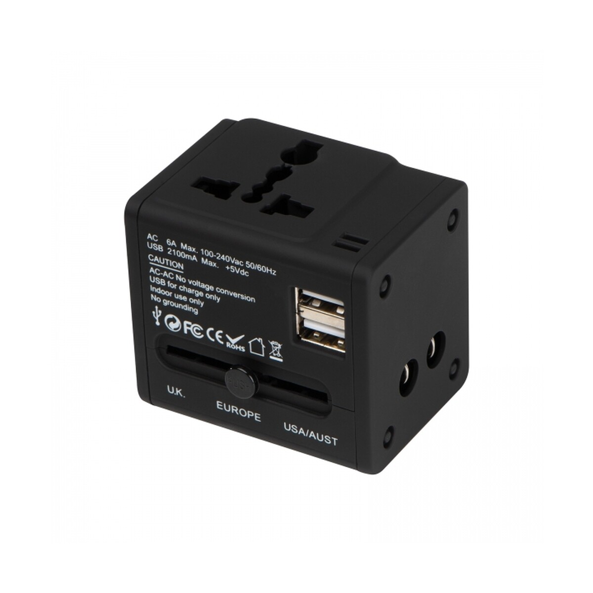Adapter podróżny TADDEO to znakomity kompan wszędzie tam, gdzie liczy się mobilność, bezpieczeństwo ładowania i wizerunek marki 🙂 Wykonany z trwałego połączenia plastiku i przyjemnej w dotyku gumay, ten kompaktowy gadżet o wymiarach 6,2 x 4,4 x 5,4 cm i masie zaledwie 0.146 kg zmieści się w każdej torbie biznesowej czy plecaku podróżnika. Dzięki uniwersalnej przejściówce z adapterami do gniazd US, UK, AUS, EU oraz dwa porty USB zagwarantuje bezproblemowe zasilanie telefonu, laptopa czy aparatu w niemal każdym zakątku świata.