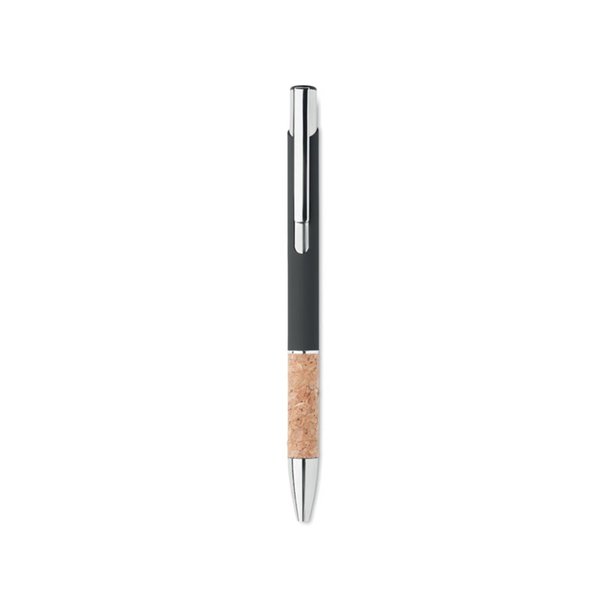 Aluminiowy długopis przycisk VERIA to elegancki, a zarazem przyjazny środowisku wybór, który wzbogaci każdą kampanię promocyjną 🙂 Dzięki połączeniu aluminium z naturalnym korkowym uchwytem ten smukły instrument piśmienniczy łączy nowoczesną estetykę z ekologiczną świadomością, wpisując się idealnie w kategorię długopisów metalowych i ekologicznych z logo. Solidna, przyciskana konstrukcja zapewnia wygodę użytkowania, a niebieski tusz gwarantuje czytelność notatek podczas spotkań biznesowych czy konferencji.