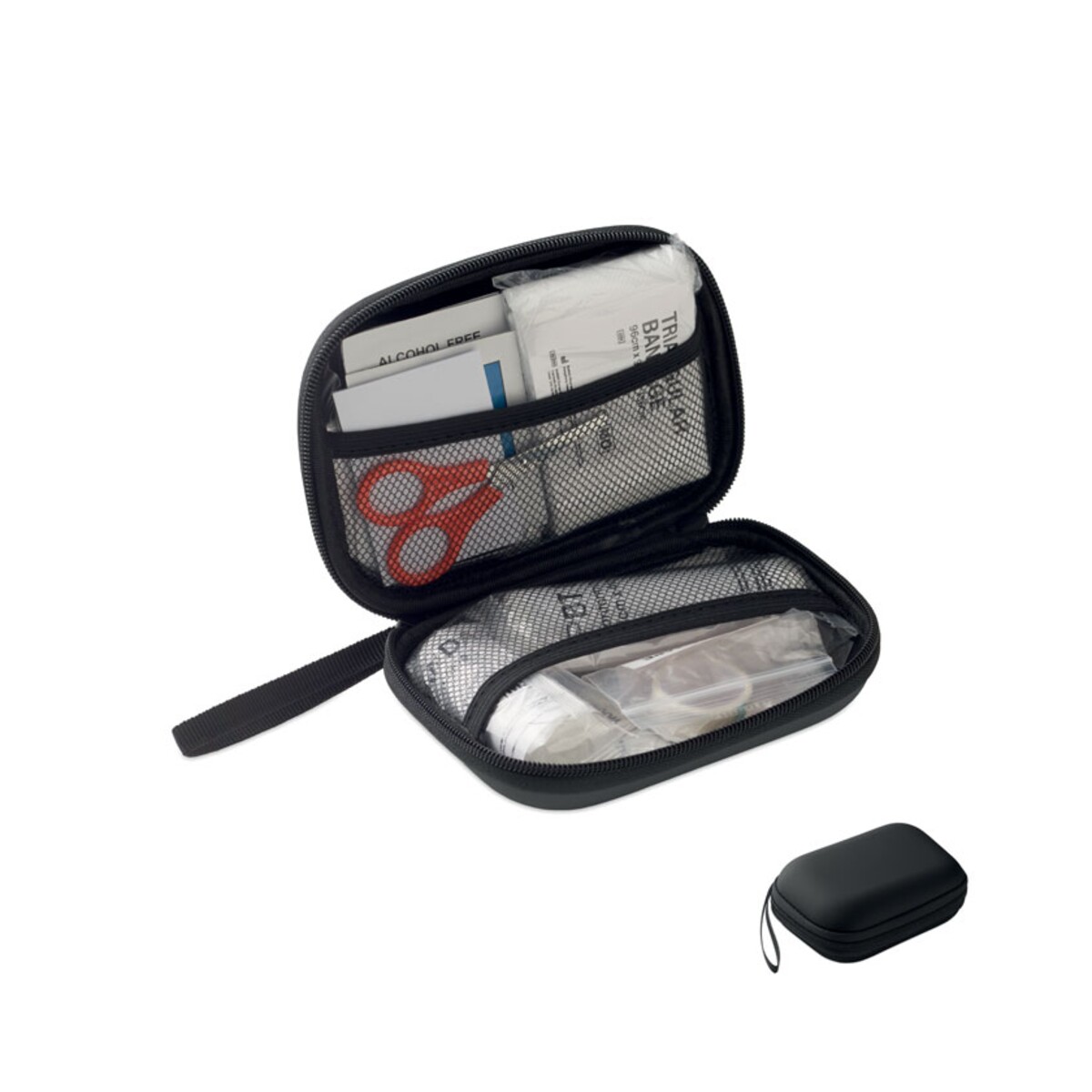 Apteczka pierwszej pomocy CARETWO to kompaktowy, lecz wyjątkowo pojemny gadżet, który zapewni poczucie bezpieczeństwa w biurze, samochodzie czy podczas firmowych wydarzeń. Sztywne etui o wymiarach 16 x 11,5 x 6,7 cm wykonane z wytrzymałego materiału PU chroni zawartość przed wilgocią i uszkodzeniami mechanicznymi. W środku znajdziesz: 2 rękawiczki, koc ratunkowy, taśmę, 2 bandaże, nożyczki, 4 waciki, 10 plastrów oraz 6 chusteczek czyszczących – wszystko, czego potrzeba, by szybko zareagować w nagłej sytuacji 😌. Nieduża waga 0,240 kg ułatwia przenoszenie, a dostępne kolory – energetyczny czerwony lub elegancki czarny – pozwalają dopasować apteczkę do identyfikacji wizualnej marki.