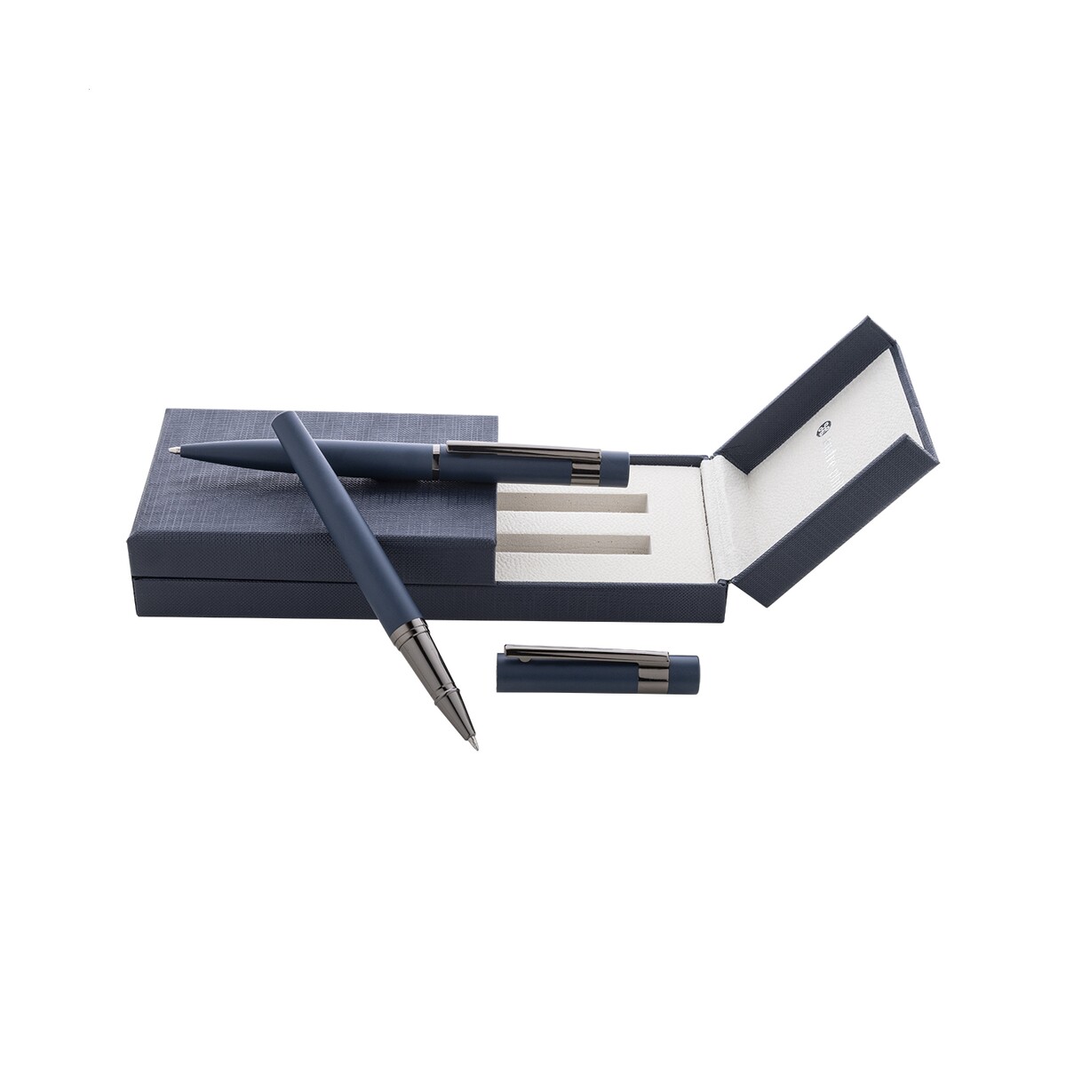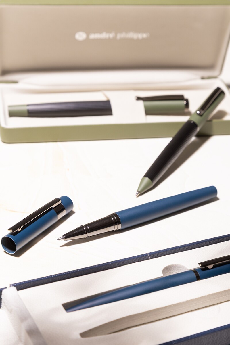 Atelier zestaw piśmienniczy to szykowny duet długopisu i pióra kulkowego, który przyciąga spojrzenia błyszczącymi, grafitowymi detalami i ponadczasową linią. Wykonany w całości z metalu, zapakowany w eleganckie pudełko prezentowe w dopasowanym odcieniu, staje się nieodzownym elementem każdego biurka i konferencyjnej torby. Materiał: Metal gwarantuje trwałość, a niebieski wkład w zestawie pozwala od razu rozpocząć notowanie. Dzięki trzem stylowym kolorom – zielonemu, niebieskiemu i czarnemu – łatwo dopasujesz barwę do identyfikacji wizualnej marki 🙂.