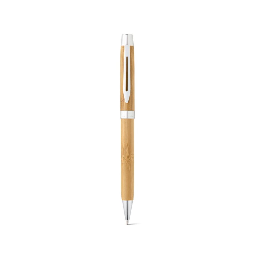 BAHIA II. Bambusowy długopis z klipsem i mechanizmem obrotowym znakomicie sprawdzi się w branżach, które stawiają na zrównoważony rozwój: od firm kosmetycznych promujących wegańskie linie, przez przedsiębiorstwa energetyki odnawialnej, aż po agencje turystyczne oferujące eko-wyprawy. To gadżet stworzony dla Twojej firmy, przygotowany, by dumnie nosić Twoje logo bądź efektowny nadruk. Dzięki temu staje się nie tylko praktycznym narzędziem, lecz także subtelnym nośnikiem przekazu reklamowego. 🎁