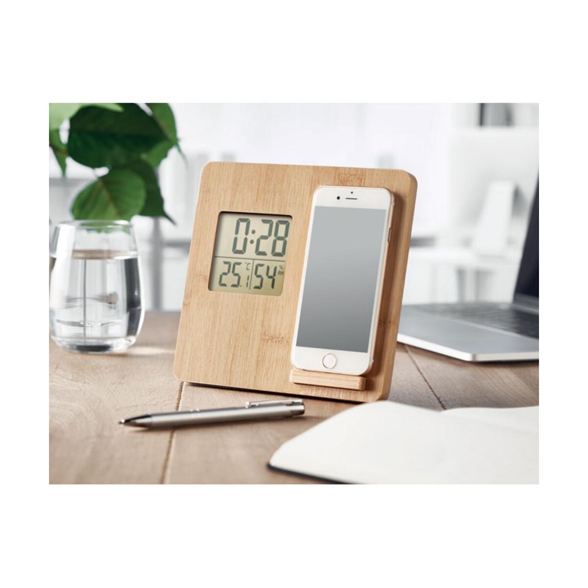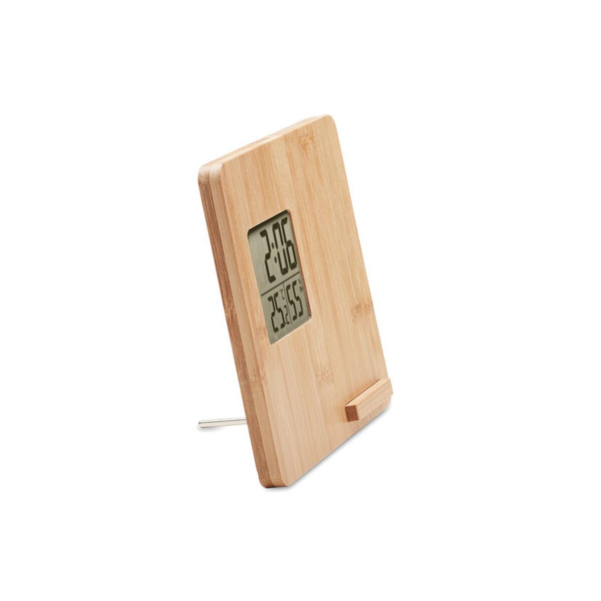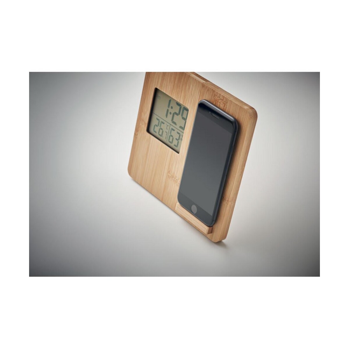 Bambusowa stacja pogodowa FERREL to wielofunkcyjny gadżet, który łączy w sobie bezprzewodową ładowarkę 15 W, precyzyjny wyświetlacz czasu, temperatury i wilgotności oraz praktyczną podstawkę na smartfon. Naturalna, drewniana kolorystyka i ekologiczny materiał bamboo czynią ją znakomitym akcentem biurkowym, który podkreśli troskę o środowisko 🌿. Dzięki wymiarom 18 × 17 × 1,3 cm i wadze zaledwie 0,358 kg urządzenie jest lekkie, a zarazem stabilne. W zestawie znajduje się bateria CR2032 podtrzymująca ustawienia, dlatego zawsze masz pewność, że dane są aktualne.