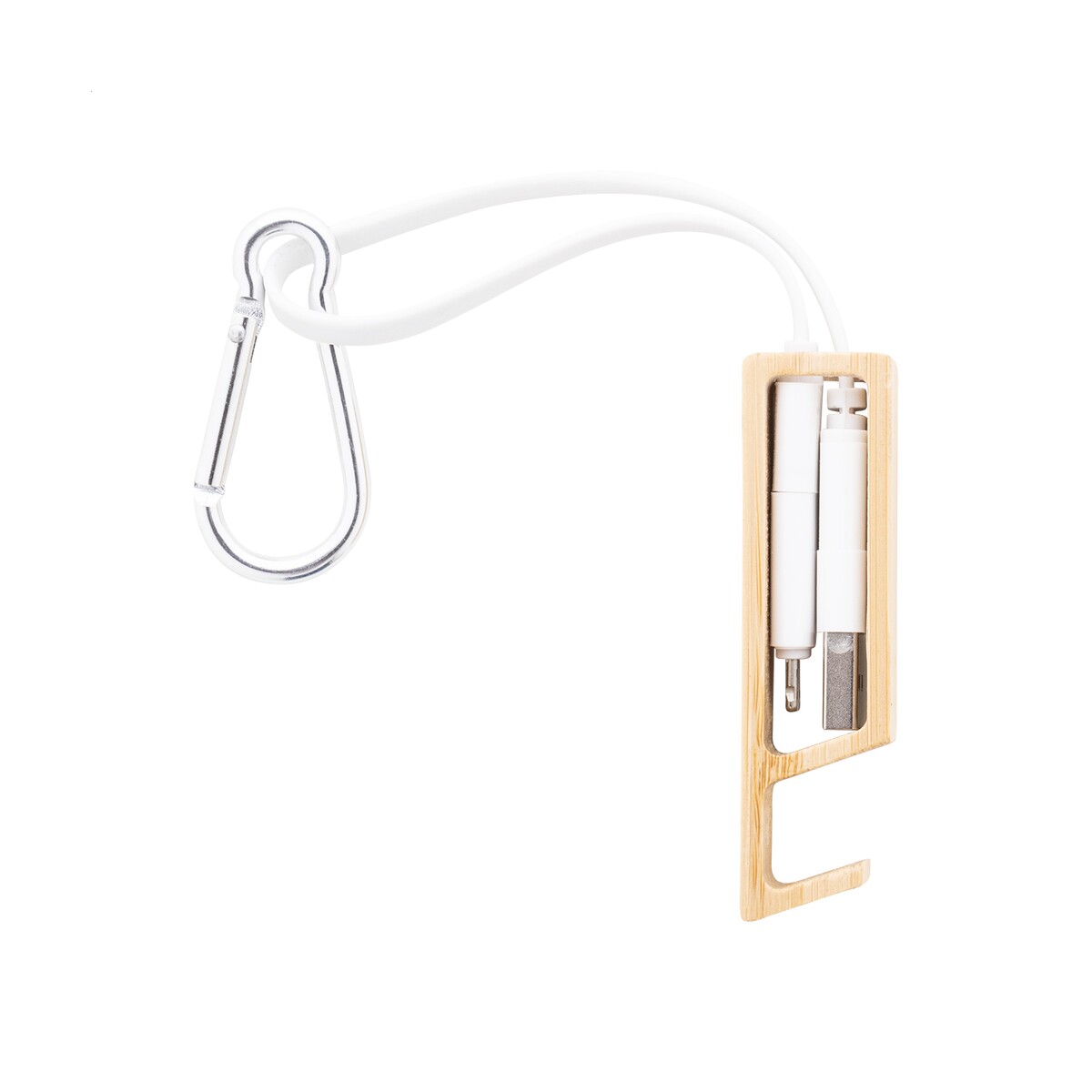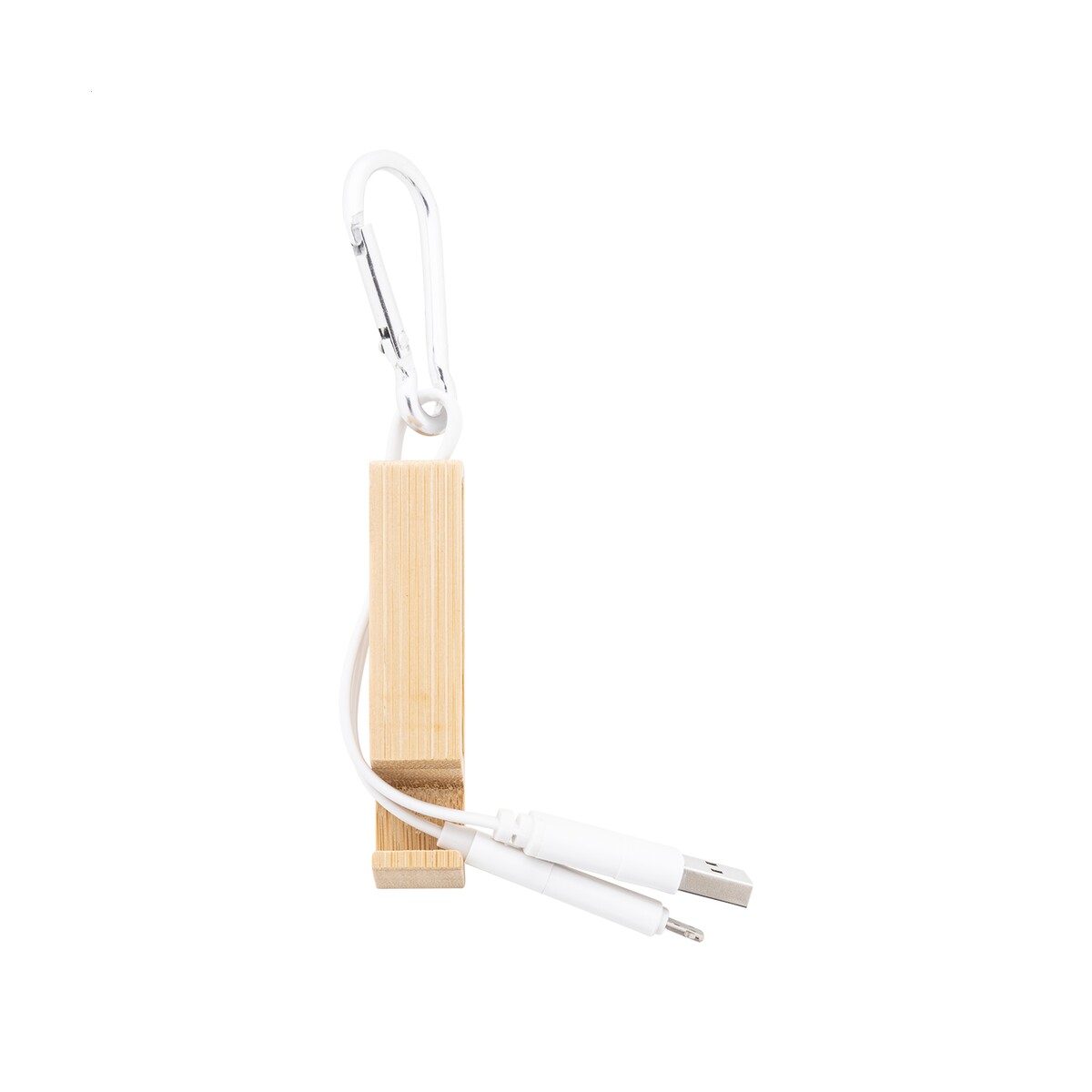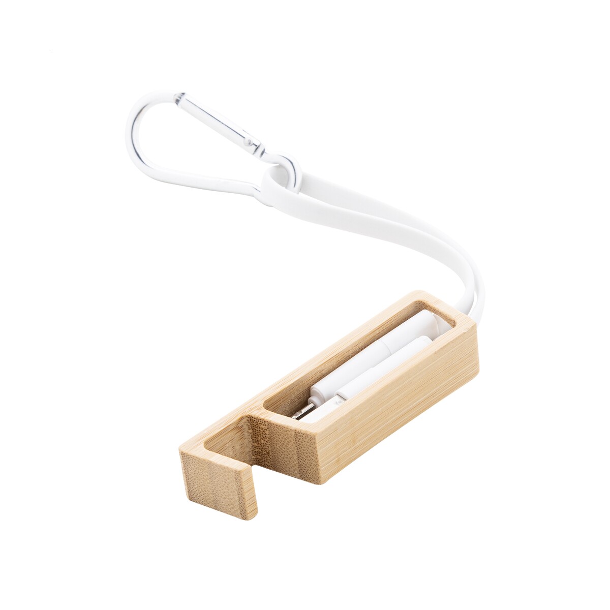Boppy kabel USB do ładowania to wszechstronny, przyjazny środowisku gadżet, który z powodzeniem zastąpi kilka akcesoriów naraz. Dzięki kompaktowym wymiarom 155×15×19 mm i wadze zaledwie 29,5 g bez trudu przypniesz go do plecaka, kluczy czy torby za pomocą praktycznego karabińczyka. Aluminiowa obudowa wykonana z recyklingu w połączeniu z eleganckim bambusowym uchwytem na telefon sprawia, że produkt wygląda stylowo i przyciąga wzrok – a miejsce na logo lub nadruk pozwala zamienić go w wyjątkowy nośnik Twojej marki 😊.