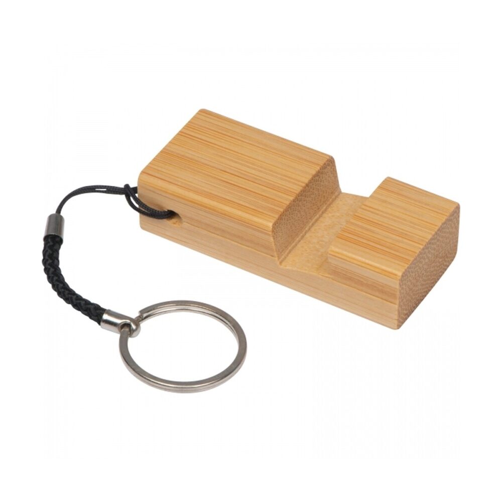 Dzięki płaskiej powierzchni bambusowej wstawki Breloczek – stojak na telefon TABITHA znakomicie nadaje się do personalizacji: precyzyjny nadruk lub grawer laserowy pozwoli umieścić Twoje logo, czyniąc z niego praktyczny upominek reklamowy. To doskonała propozycja dla Twojej firmy, jeśli działasz w branży technologicznej, telekomunikacyjnej, e-commerce czy szeroko pojętym marketingu eventowym. Podczas konferencji, targów czy szkoleń stanie się eleganckim dodatkiem do zestawu powitalnego, a zadowoleni uczestnicy chętnie zabiorą go ze sobą, promując Twoją markę na co dzień.