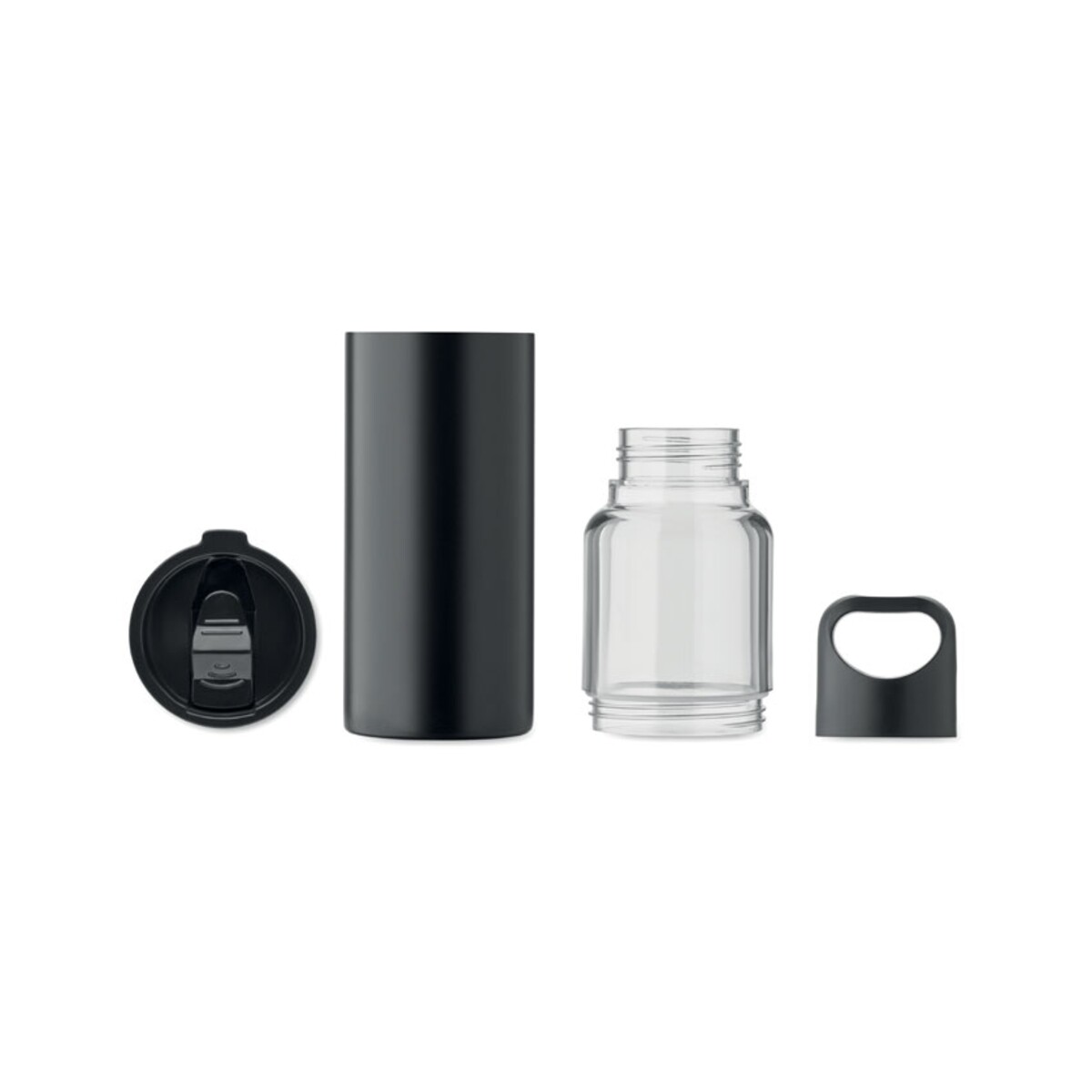 Kolor: czarny – elegancki i uniwersalny, pasujący do każdej identyfikacji wizualnej. Wymiary: 7,2 × 28,5 cm; waga: 0,472 kg – lekka, a zarazem solidna. Materiał: stainless steel + Tritan – gwarancja higieny i odporności na uszkodzenia. Podwójne ścianki utrzymują temperaturę napoju dłużej, a szczelne pokrywki z PP zapobiegają przeciekaniu.