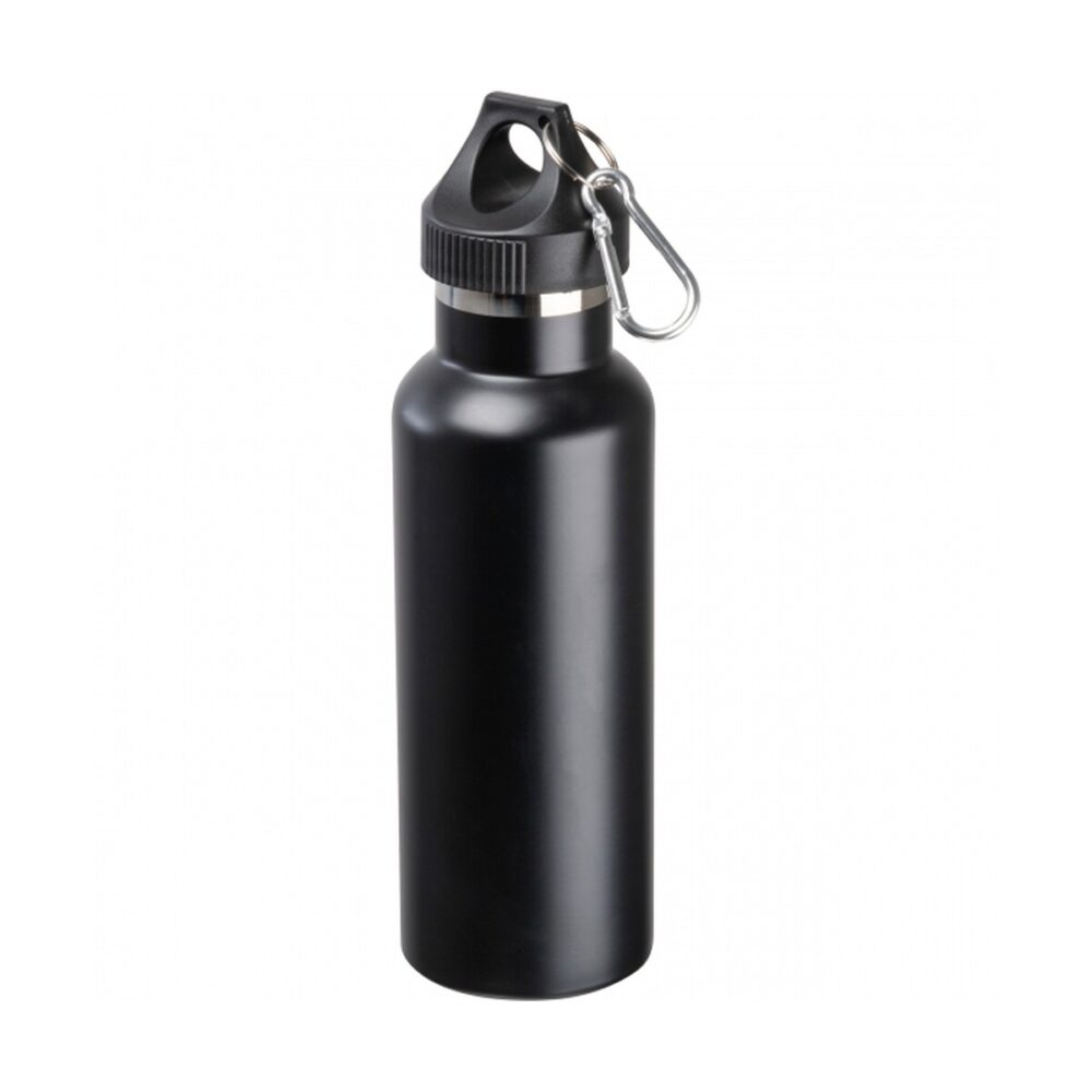 Butelka termiczna 500 ml NICOLAS to nowoczesne połączenie stylu i funkcjonalności, które zachwyci każdego miłośnika aktywnego trybu życia. Wykonana z stali nierdzewnej, wyposażona w matową powłokę i praktyczny karabińczyk w zakrętce, pozwala pewnie zamocować naczynie do plecaka lub torby. Jej pojemność 500 ml sprawdzi się zarówno podczas miejskich spacerów, jak i długich wypraw w góry 🙂. Niewielkie wymiary 24,5 × ⌀ 7 cm oraz waga zaledwie 350 g czynią ją wygodną w transporcie, a jednolity czarny kolor nadaje elegancji, podkreślając uniwersalny charakter produktu.