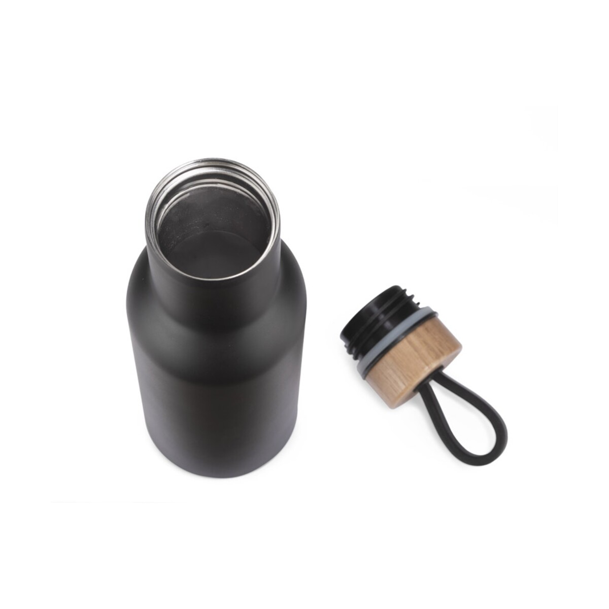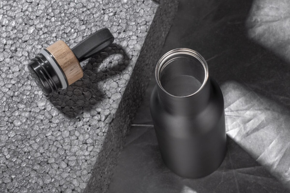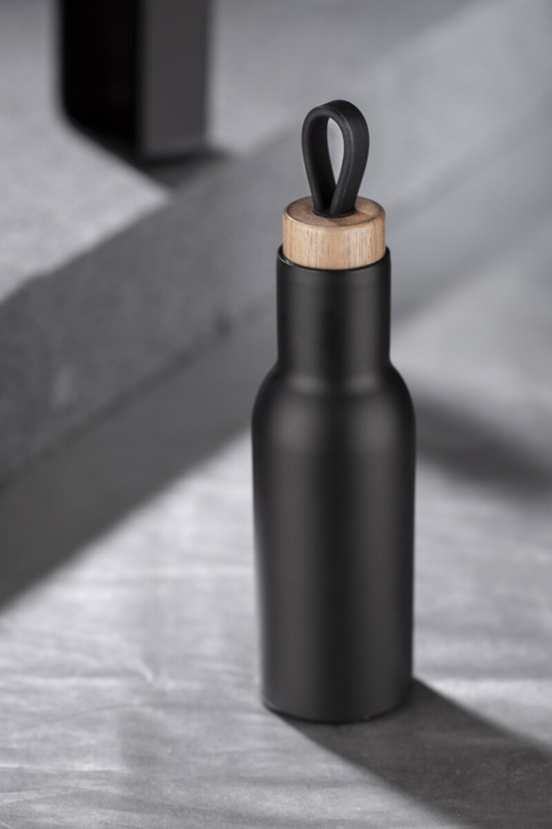 Reklamowe walory uzupełnia kilka kluczowych zalet: pojemność 400 ml, podwójne ścianki z próżnią, drewniana zakrętka z silikonowym uchwytem, stal nierdzewna 304, lekka konstrukcja. Dzięki nim butelka jest doskonała na gorącą kawę w drodze do pracy, mrożoną herbatę na wakacyjny wyjazd czy izotonik po intensywnym treningu 💪. To wyśmienity prezent, który przez długi czas będzie przypominał odbiorcom o Twojej marce, budując pozytywne skojarzenia i lojalność.