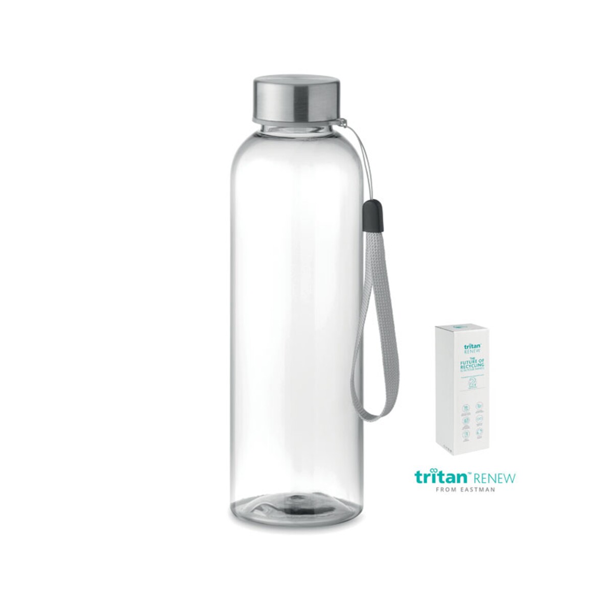Butelka Tritan Renew™ 500 ml SEA to nowoczesny, ekologiczny gadżet promocyjny, który z łatwością przykuje uwagę Klientów, Partnerów i Pracowników. Wykonana w 50 % z recyklingowanych odpadów z tworzyw sztucznych w oparciu o certyfikowany bilans masy ISCC, stanowi znakomity wybór dla marek, które chcą podkreślić swój proekologiczny charakter. Jej smukła forma (ø6 × 20,5 cm), niska waga 116 g oraz krystalicznie przezroczyste ścianki w odcieniu niebieskim, szarym lub bezbarwnym sprawiają, że produkt prezentuje się wyjątkowo elegancko. Szczelna zakrętka z uchwytem ze stali nierdzewnej gwarantuje, że napój pozostanie bezpieczny zarówno w torbie sportowej, jak i w służbowej teczce. 🌿