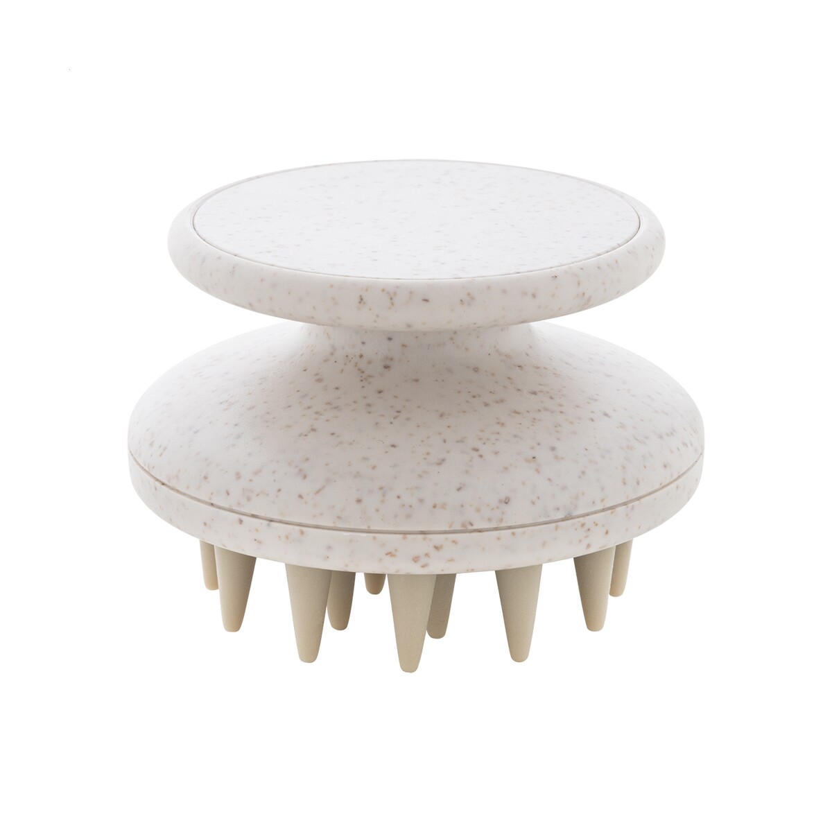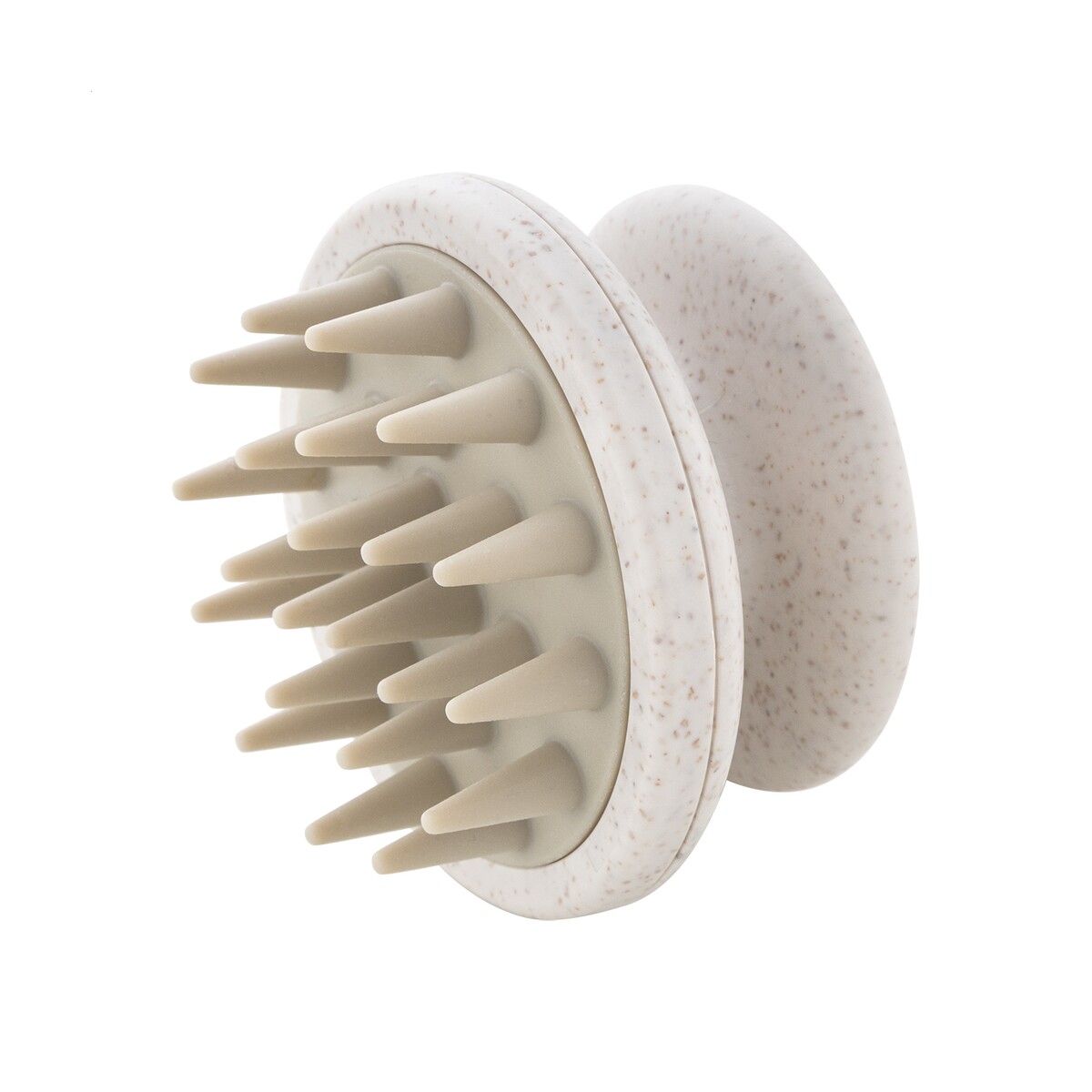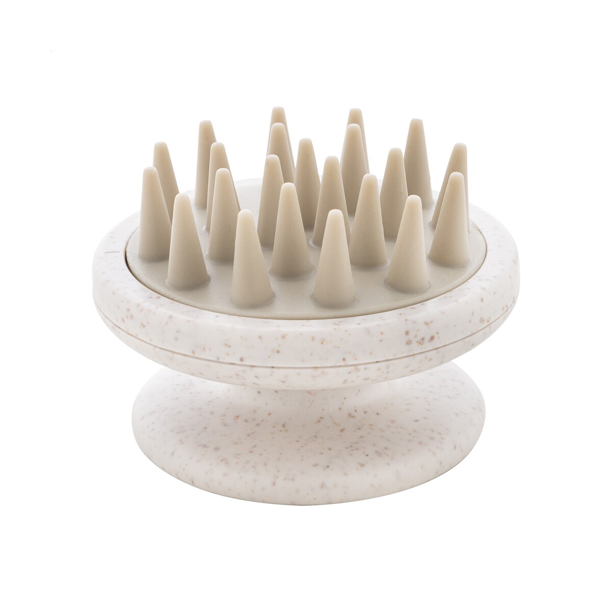 Calmera masażer głowy to niezastąpiony, ekologiczny gadżet łazienkowy, który doskonale wpisuje się w kategorię akcesoriów do łazienki z logo oraz produktów higieny osobistej z logo. Wykonany z przyjaznej środowisku mieszanki słomy pszenicznej i plastiku, z miękkim silikonowym włosiem, zapewnia przyjemny, relaksujący masaż skóry głowy, pobudzając krążenie i poprawiając wchłanianie szamponu 😊. Ten zgrabny masażer o średnicy 70 mm i wysokości 48 mm waży zaledwie 49 g, dzięki czemu wygodnie leży w dłoni podczas codziennej pielęgnacji.