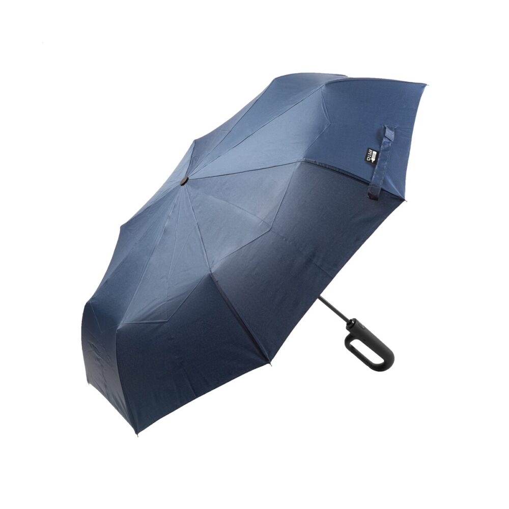 Model wykonano z wytrzymałego materiału 190T pongee z recyklingu PET, co podkreśla proekologiczne wartości dla Twojej firmy. Konstrukcja obejmuje metalową ramę oraz elastyczne żebra z włókna szklanego, dzięki czemu parasol jest wiatroszczelny i odporny na nagłe porywy wiatru. Funkcja w pełni automatycznego otwierania i zamykania gwarantuje wygodę użytkowania jedną ręką, a gumowany uchwyt z karabińczykiem pozwala wygodnie przypiąć parasol do torby lub plecaka. Całość uzupełnia etui w dopasowanym kolorze oraz charakterystyczna metka RPET.