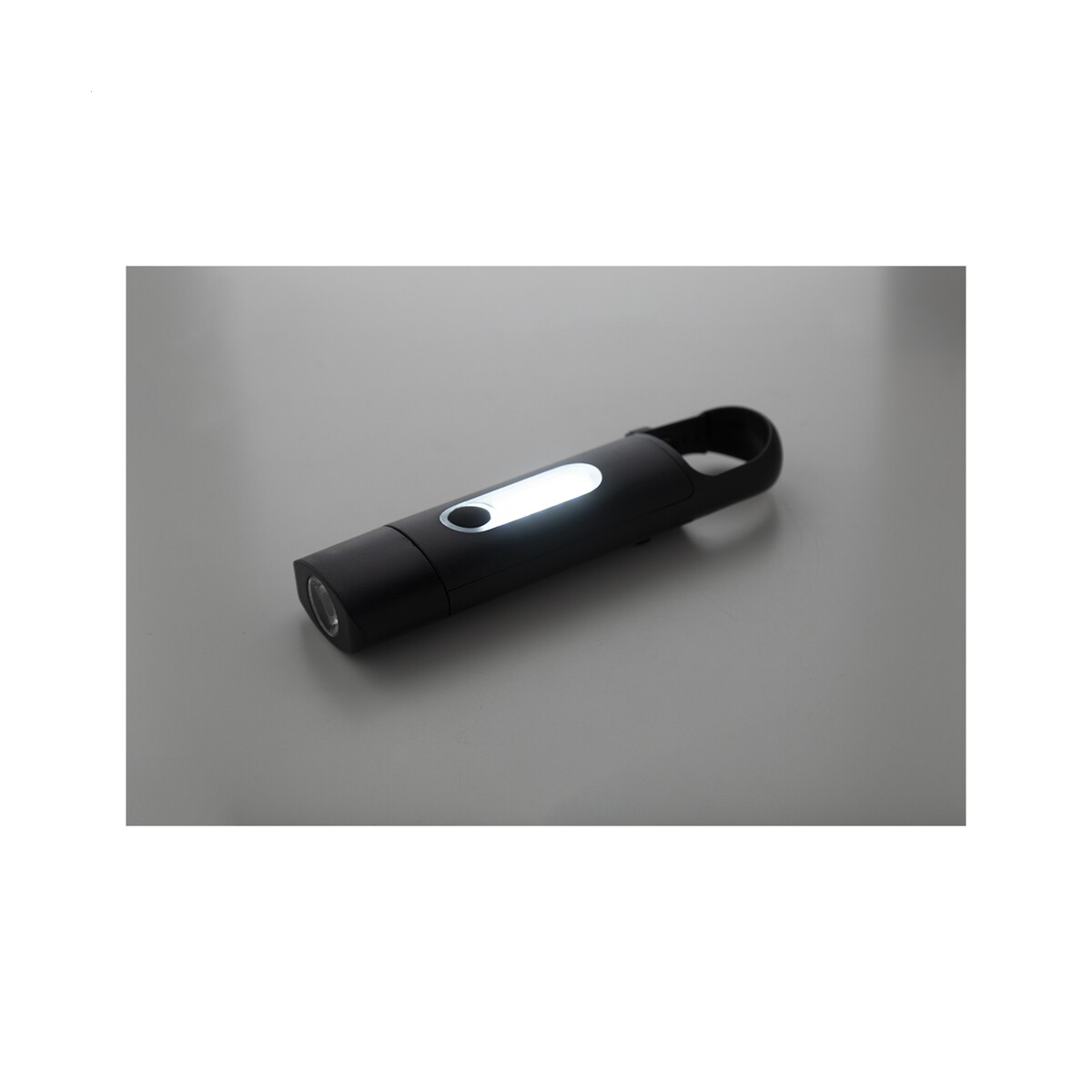 Cobiner mini latarka RABS to kompaktowe arcydzieło funkcjonalności, które zachwyci zarówno miłośników outdooru, jak i specjalistów od marketingu szukających skutecznych rozwiązań promocyjnych 😊. Dzięki solidnej obudowie z ABS z recyklingu produkt wpisuje się w obowiązujące trendy eko, a zintegrowany karabińczyk sprawia, że możesz przypiąć ją do plecaka, kluczy czy szlufki spodni i mieć światło zawsze pod ręką. Z przodu latarki znajduje się lampa COB, a z boku reflektor COB z trzema trybami świecenia, co czyni ją znakomitą podczas wieczornych spacerów z psem, awaryjnych napraw auta czy wypraw rowerowych.