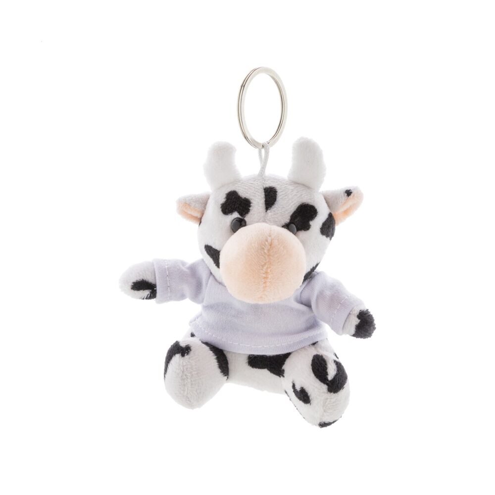 Wykonany z wysokogatunkowego materiału: Plusz, oferuje przyjemne w dotyku futerko w dwóch kontrastujących kolorach: biały oraz czarny. Jego kompaktowe wymiary: 80×60×95 mm i zaledwie waga: 34.5 g sprawiają, że zmieści się w kieszeni, torbie czy przy kluczach, nie obciążając użytkownika. Dopełnieniem jest solidne metalowe kółko, dzięki któremu pluszowa krówka zawsze pozostanie na swoim miejscu.