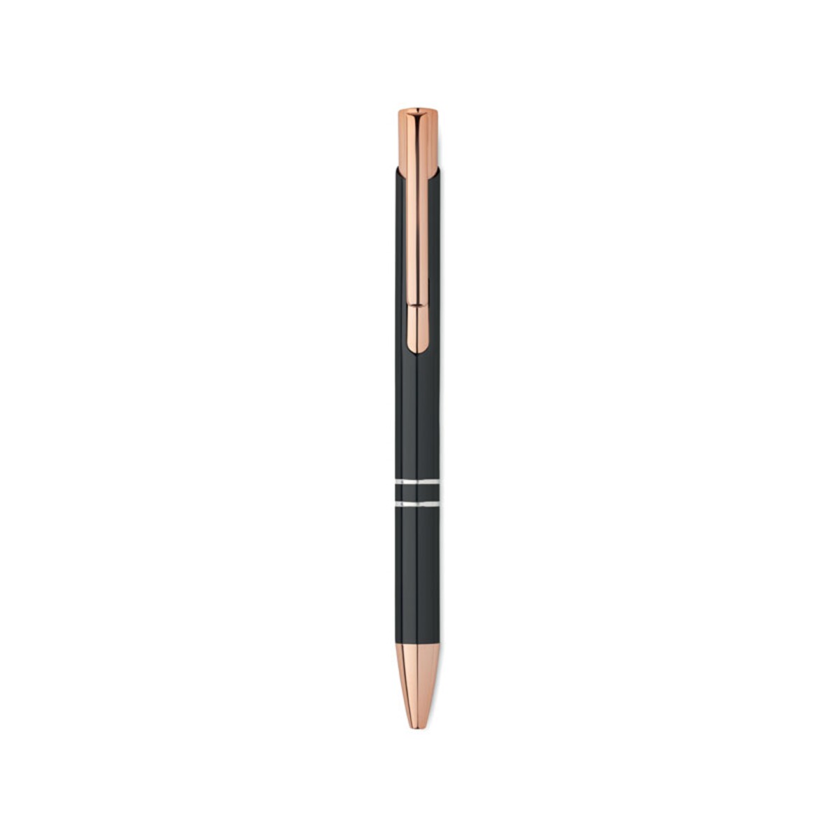 Długopis aluminiowy z rec. BERN ROSE to znakomity wybór dla firm, które chcą połączyć elegancję metalu z troską o środowisko 🌿. Korpus wykonany z aluminium pochodzącego z recyklingu prezentuje się wyjątkowo stylowo w odcieniach beżowym, białym, czarnym czy srebrnym, a niebieski tusz gwarantuje czytelną, klasyczną linię pisma. Dzięki kompaktowym wymiarom: ø1 x 13,5 cm i lekkiej wadze: 0,019 kg długopis świetnie leży w dłoni, a mechanizm przyciskany umożliwia błyskawiczne notowanie, co docenią zarówno studenci, jak i menedżerowie na spotkaniach.