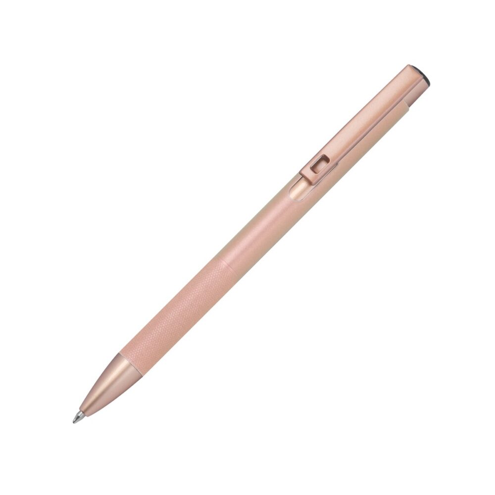 Długopis aluminiowy z recyklingu NATASHA to znakomity sposób, aby w subtelny, a zarazem wyrazisty sposób promować markę 🙂. Wykonany z aluminium z recyklingu, z matowym wykończeniem i eleganckimi akcentami w odcieniu różowego złota, stanowi ekologiczne i stylowe nawiązanie do wartości firmy dbającej o środowisko. Jego smukły korpus (wymiary 14,2 × 1 cm) skrywa niebieski wkład o dużej pojemności, dzięki czemu sprawdzi się nawet przy intensywnym użytkowaniu. Niespełna waga 0,016 kg sprawia, że pisanie nim jest lekkie i przyjemne, a strefa uchwytu z rombowym wzorem zapewnia pewny chwyt.