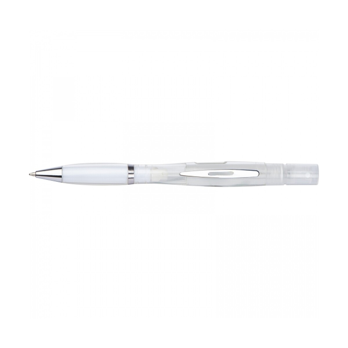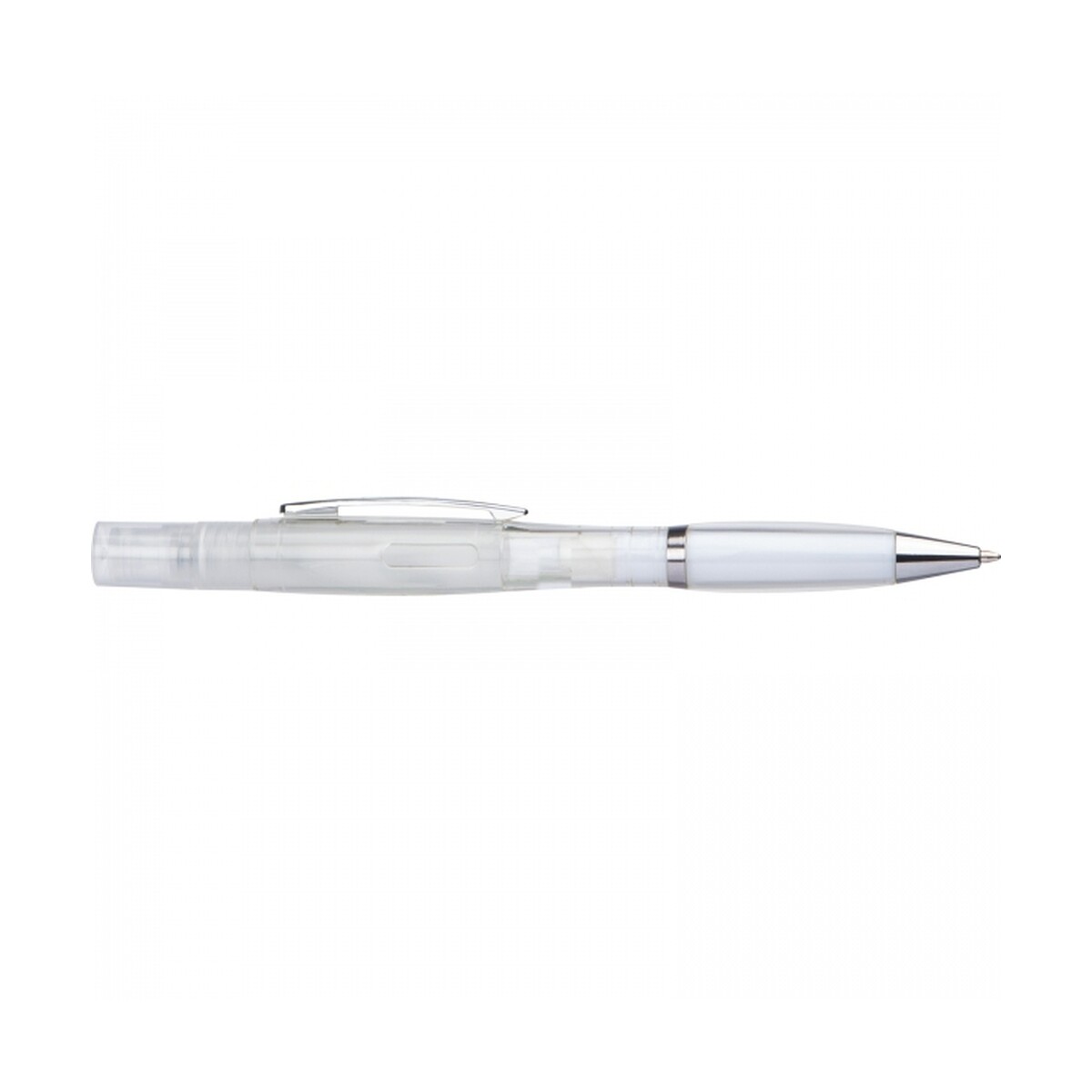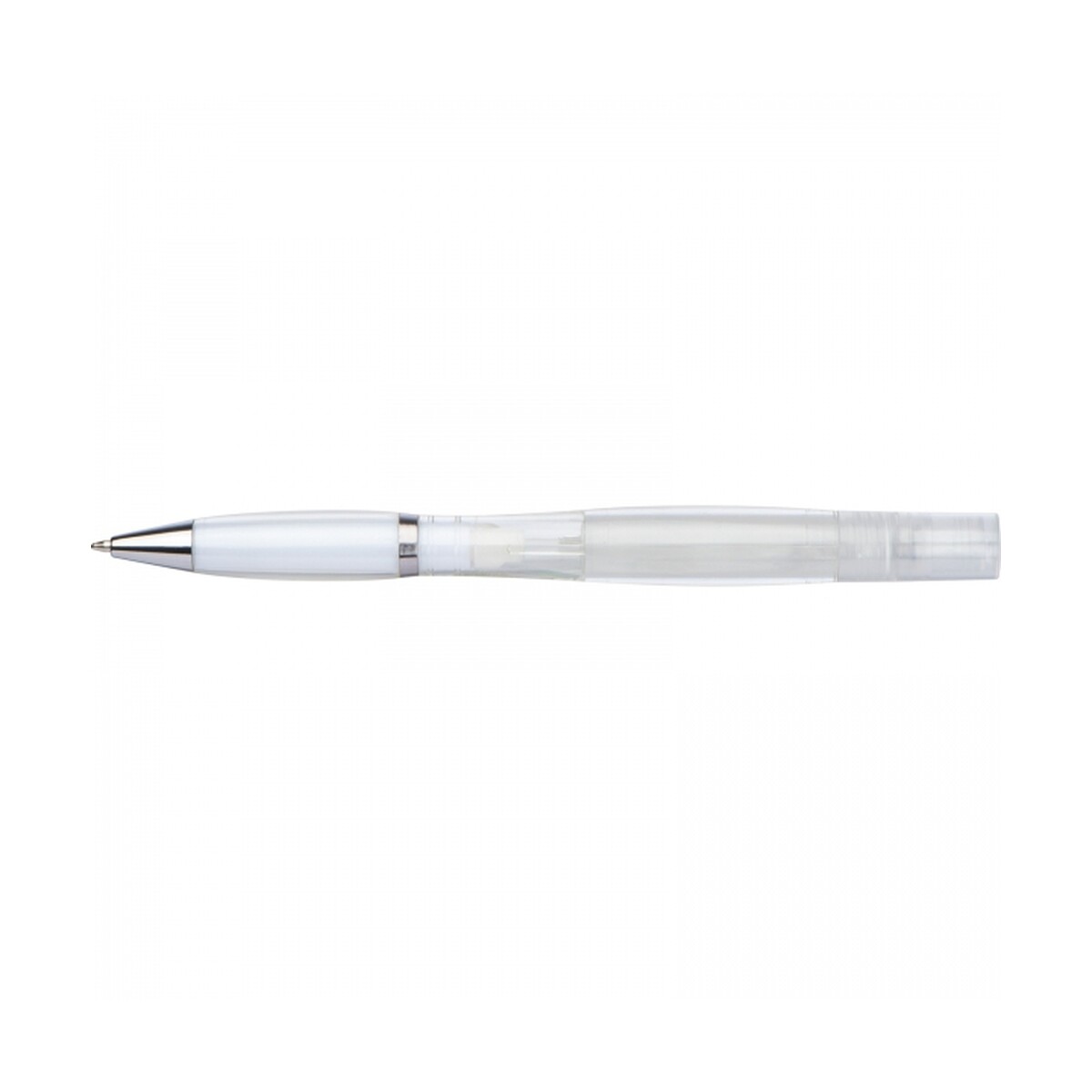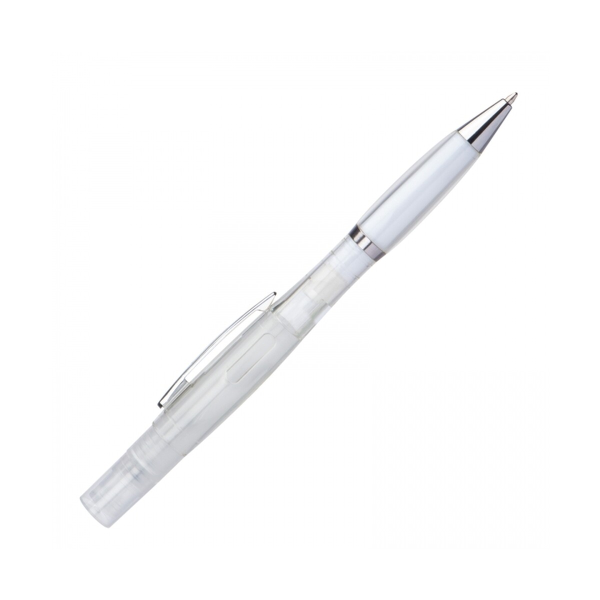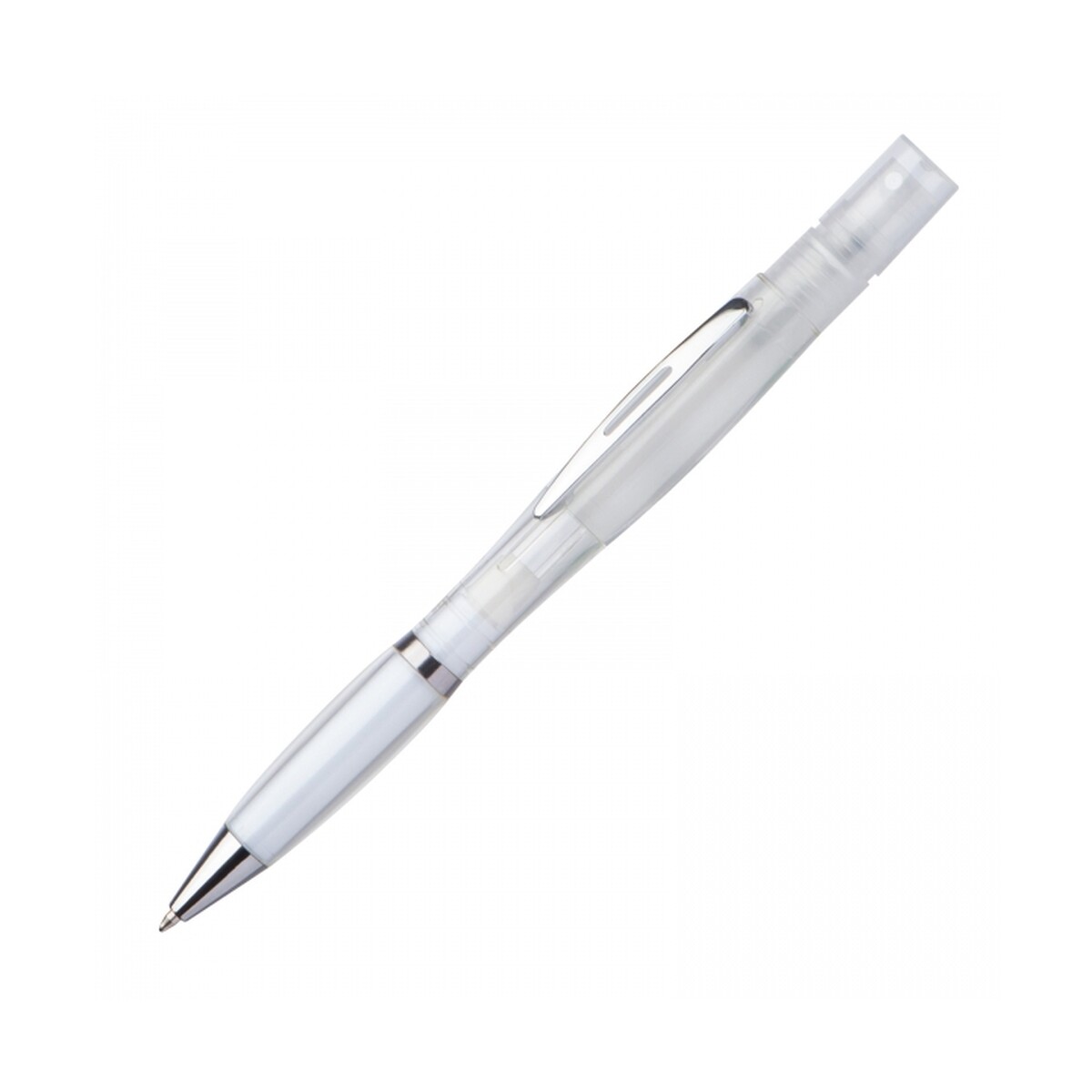 Długopis plastikowy z rozpylaczem SABINA to niezwykle pomysłowy gadżet, który łączy w sobie funkcję klasycznego, niebiesko piszącego długopisu z praktycznym atomizerem na płyn dezynfekujący lub perfumy 🙂. Ten wielofunkcyjny produkt wyróżnia się wśród artykułów piśmienniczych jako nośnik logo oraz efektowny upominek reklamowy, przyciągający uwagę każdego, kto ceni higienę oraz wygodę w jednym. Dzięki przekręcanemu mechanizmowi piszesz pewnie i bezpiecznie, a niewielki przycisk rozpylacza umożliwia szybkie odświeżenie dłoni lub otoczenia w każdym miejscu.