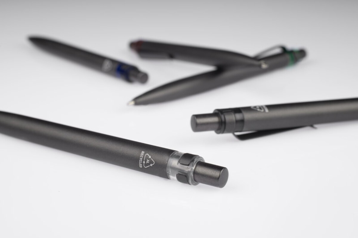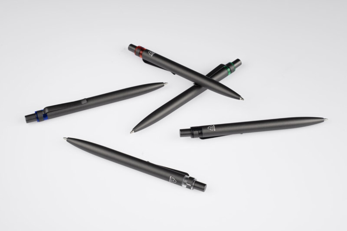 Długopis RAL to znakomity wybór dla marek, które pragną połączyć elegancję z troską o środowisko. Korpus z recyklingowanego aluminium w grafitowym odcieniu z efektownym, chromowanym wykończeniem przyciąga wzrok i buduje nowoczesny wizerunek. Aluminiowy klips z barwnym akcentem sprawia, że model staje się natychmiast rozpoznawalny, a automatyczny mechanizm wysuwu gwarantuje błyskawiczną gotowość do pracy 🙂. Dzięki smukłej formie i przyjemnej w dotyku powierzchni pisanie jest nie tylko komfortowe, ale i niezwykle płynne — to zasługa precyzyjnego wkładu G2 (1,0 mm).
