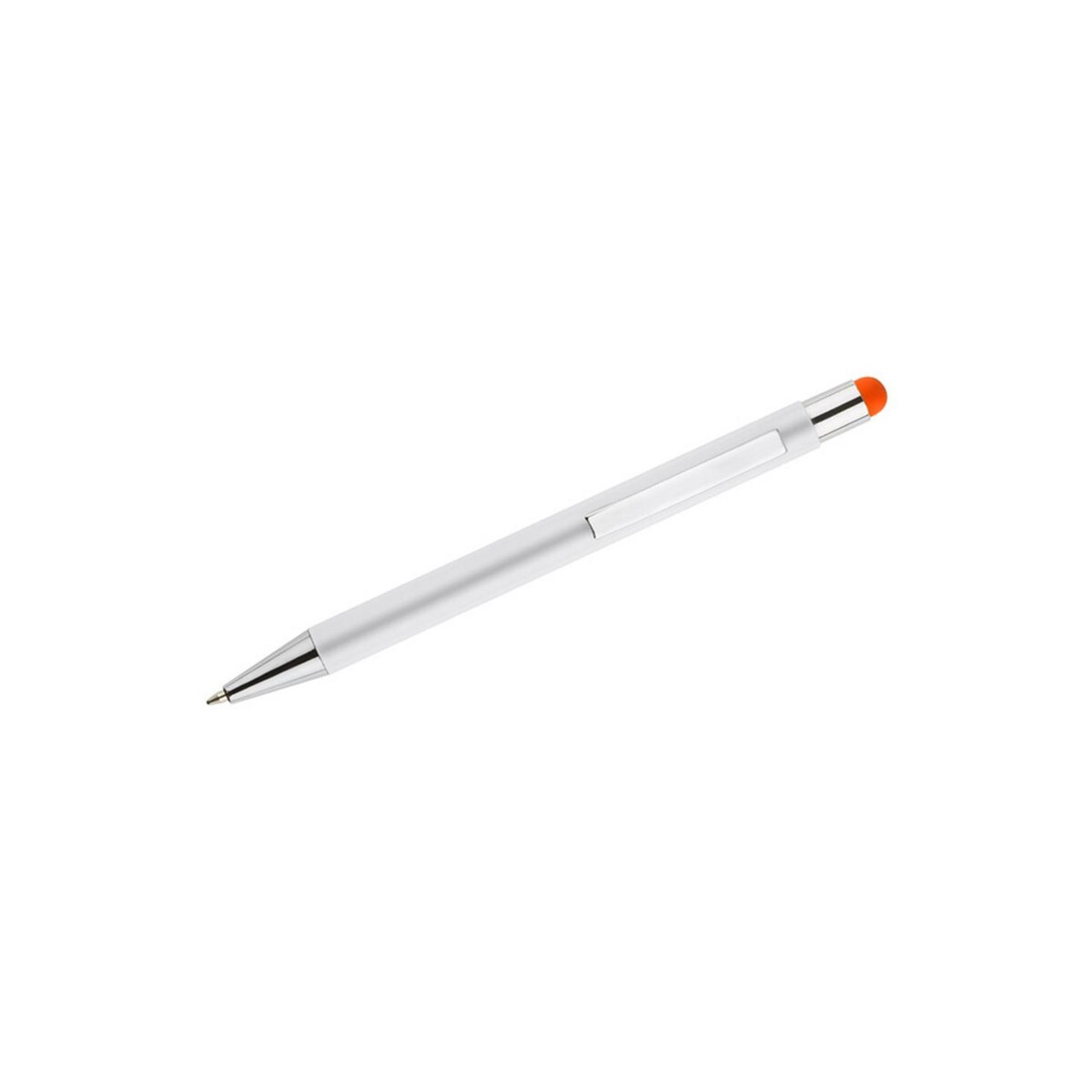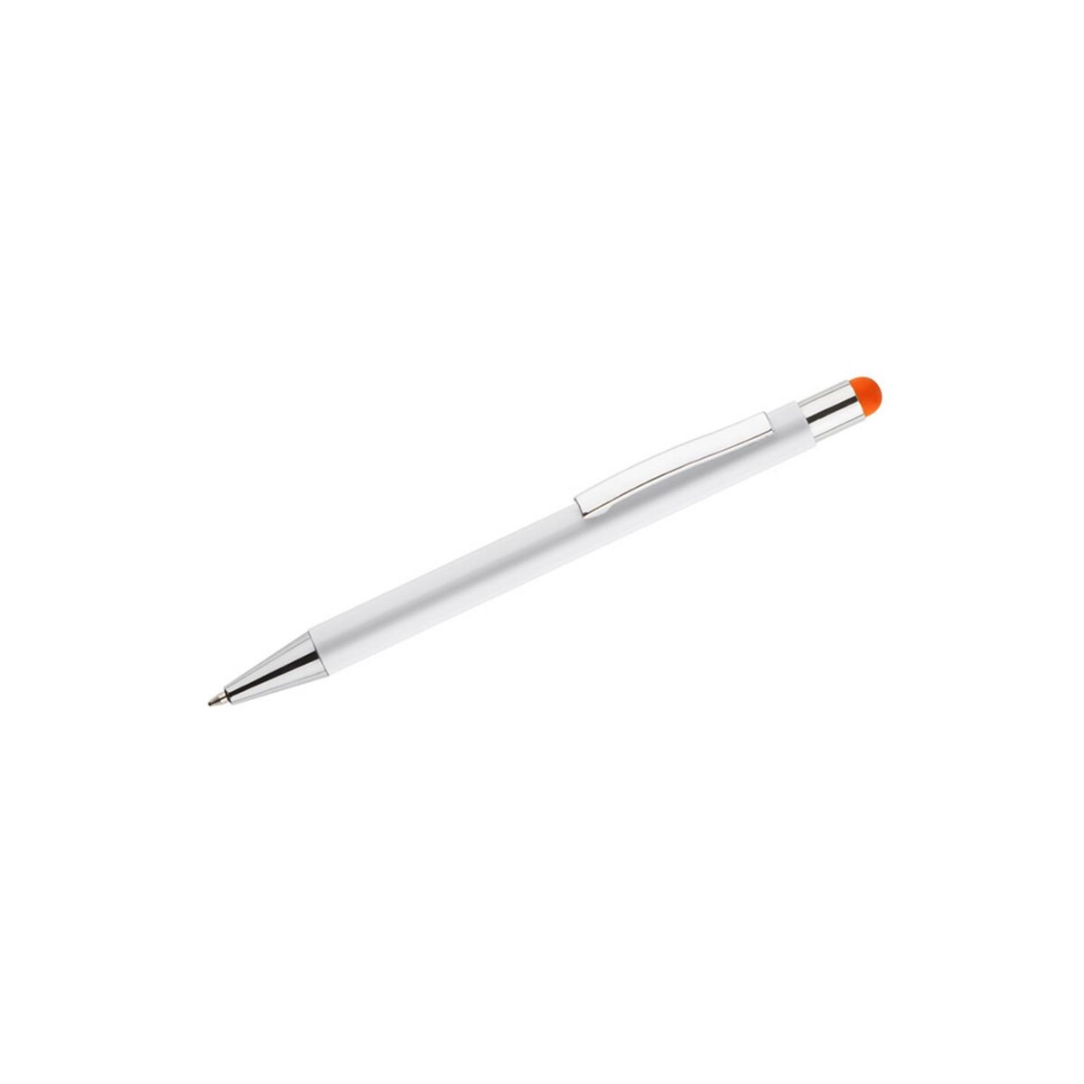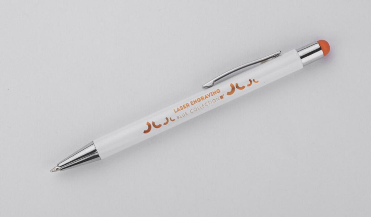 Długopis touch BIANCO to niewielki, ale niezwykle efektowny gadżet, który przyciąga uwagę każdej osoby ceniącej praktyczne rozwiązania wzbogacone o elegancki detal 🙂. Aluminiowy korpus pokryty śnieżnobiałą farbą pięknie kontrastuje z pomarańczową końcówką touch, a zaskakujący efekt znakowania sprawia, że Twój nadruk czy logo nabiera wyjątkowego charakteru – kolor grawera idealnie współgra z barwą stylusa. Dzięki temu reklamowy przekaz staje się jeszcze bardziej czytelny i atrakcyjny dla Twojej firmy.
