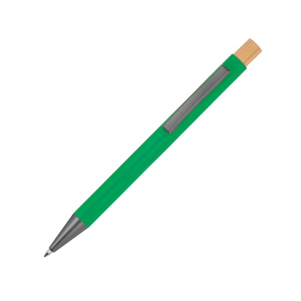 Długopis z aluminium z recyklingu ROSARIO to nowoczesny, a zarazem przyjazny środowisku gadżet, który znakomicie wyróżni markę w każdym ekologicznym projekcie 😊. Korpus z aluminium z recyklingu w połączeniu z przyciskiem z naturalnego bambus tworzy harmonijną całość i pokazuje klientom, że troska o planetę może iść w parze z elegancją. Lekka konstrukcja – zaledwie 0.017 kg – sprawia, że produkt świetnie leży w dłoni, a długość 14,2 x ⌀ 1 cm gwarantuje komfort pisania. Wkład pisze na niebiesko, a solidny metalowy klips bez trudu utrzyma długopis przy notesie czy kieszeni. Dostępność aż trzynastu wyrazistych kolorów – od klasycznej czerni i bieli po energetyczny pomarańczowy, różowy czy fioletowy – ułatwia dopasowanie do identyfikacji wizualnej każdej marki.