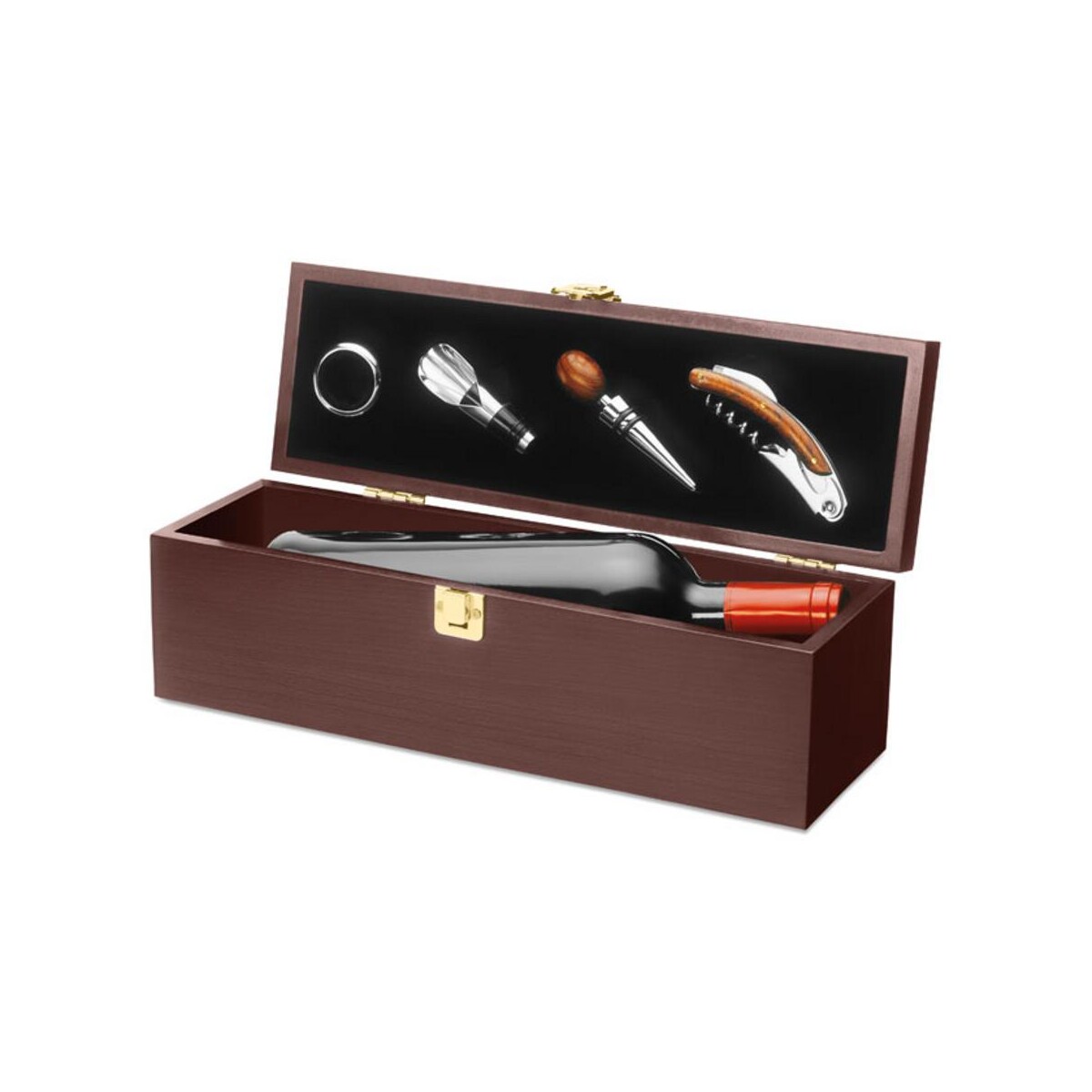 Drewniane pudełko na wino COSTIERES to ekskluzywny gadżet, który łączy elegancję naturalnego drewna MDF z praktycznym zestawem akcesoriów, tworząc perfekcyjny upominek korporacyjny 😊. Dzięki miejscu na jedną butelkę szlachetnego trunku i starannie dobranym narzędziom somelierskim, prezentuje się jako wyrób premium w kategorii Gadżety do wina z logo oraz Karafki z logo. Wzbogacony o personalizowany nadruk lub grawer, staje się niepowtarzalnym nośnikiem wizerunku dla Twojej firmy.