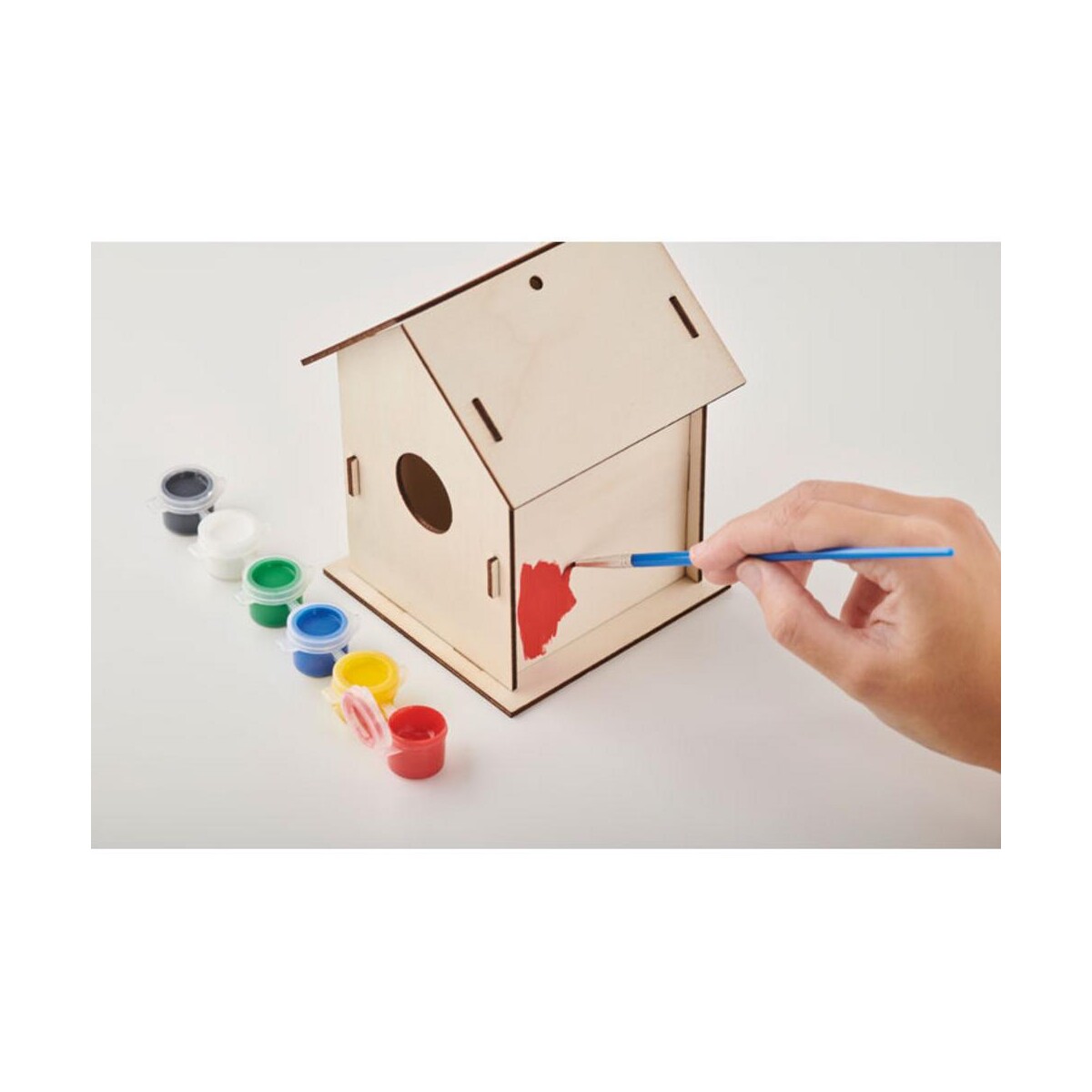 Drewniany domek dla ptaków DIY PAINTHOUSE to kreatywny gadżet, który wprowadzi do każdego ogrodu nutę naturalnego uroku i ekologicznej zabawy 🙂. Zestaw składa się z wstępnie przyciętych elementów z topoli, które można łatwo złożyć, a następnie ozdobić dzięki dołączonemu pędzelkowi i sześciu pigmentom na bazie wody. Dzięki temu reklamowemu majstersztykowi zyskujesz możliwość umieszczenia swojego logo lub efektownego nadruku na ściance domku, co czyni go praktycznym nośnikiem wizerunku dla Twojej firmy.