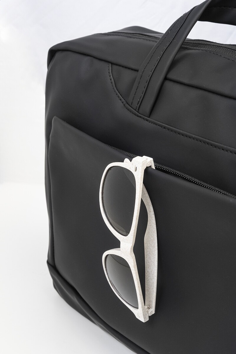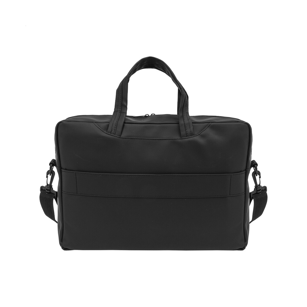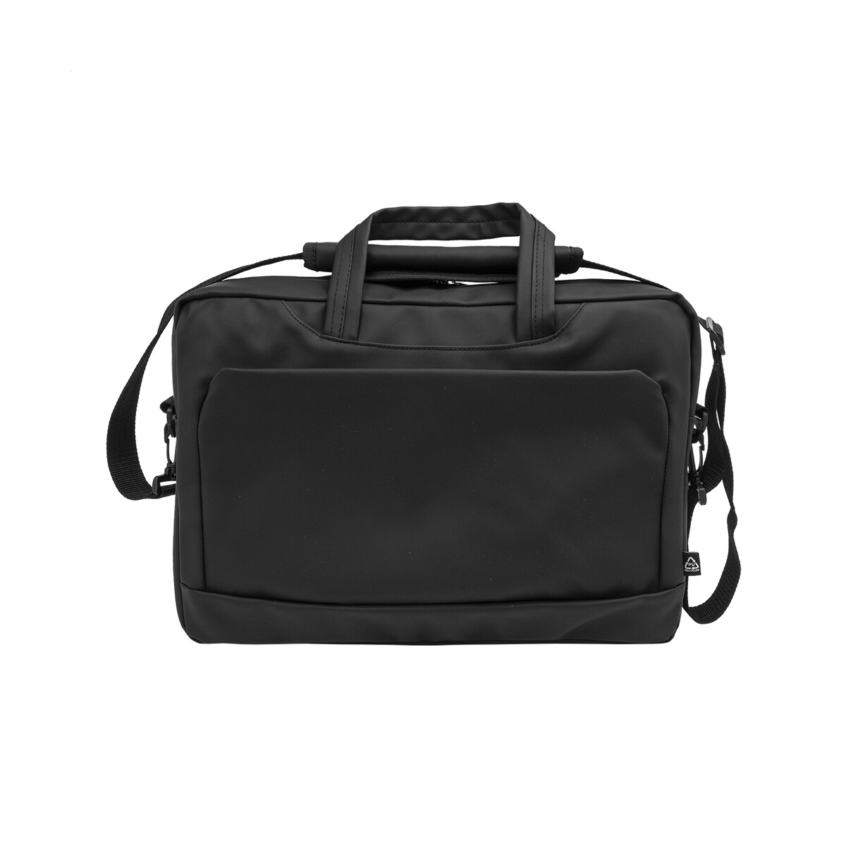 Uniwersalna, głęboka na 9 cm komora główna pomieści nie tylko komputer, ale również katalogi, notatniki czy próbniki materiałów – dlatego torba jest znakomita dla przedstawicieli handlowych, architektów i konsultantów wymagających pełnej mobilności. Regulowany pas na ramię umożliwia wygodne przenoszenie nawet przy pełnym obciążeniu, a minimalistyczna metka z recyklingowanego PU subtelnie akcentuje ekologiczną filozofię produktu. Czarny, matowy kolor stanowi neutralne tło dla firmowej identyfikacji wizualnej, eksponując każdy nadruk w sposób czytelny i schludny.