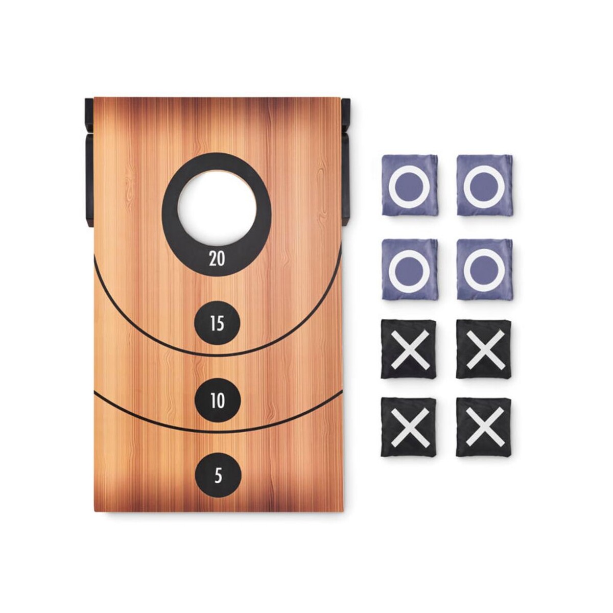 Dwustronny zestaw gier z MDF BAGGY to wszechstronny, rekreacyjny gadżet, który łączy w sobie dwie ponadczasowe zabawy – rzut woreczkami z piaskiem oraz kółko i krzyżyk. Dzięki temu z łatwością dostarczysz uczestnikom wydarzenia podwójną dawkę emocji i zdrowej rywalizacji. Płyta o solidnej konstrukcji z MDF w naturalnym, drewnianym kolorze przyciąga wzrok i podkreśla ekologiczny charakter produktu 🌳.