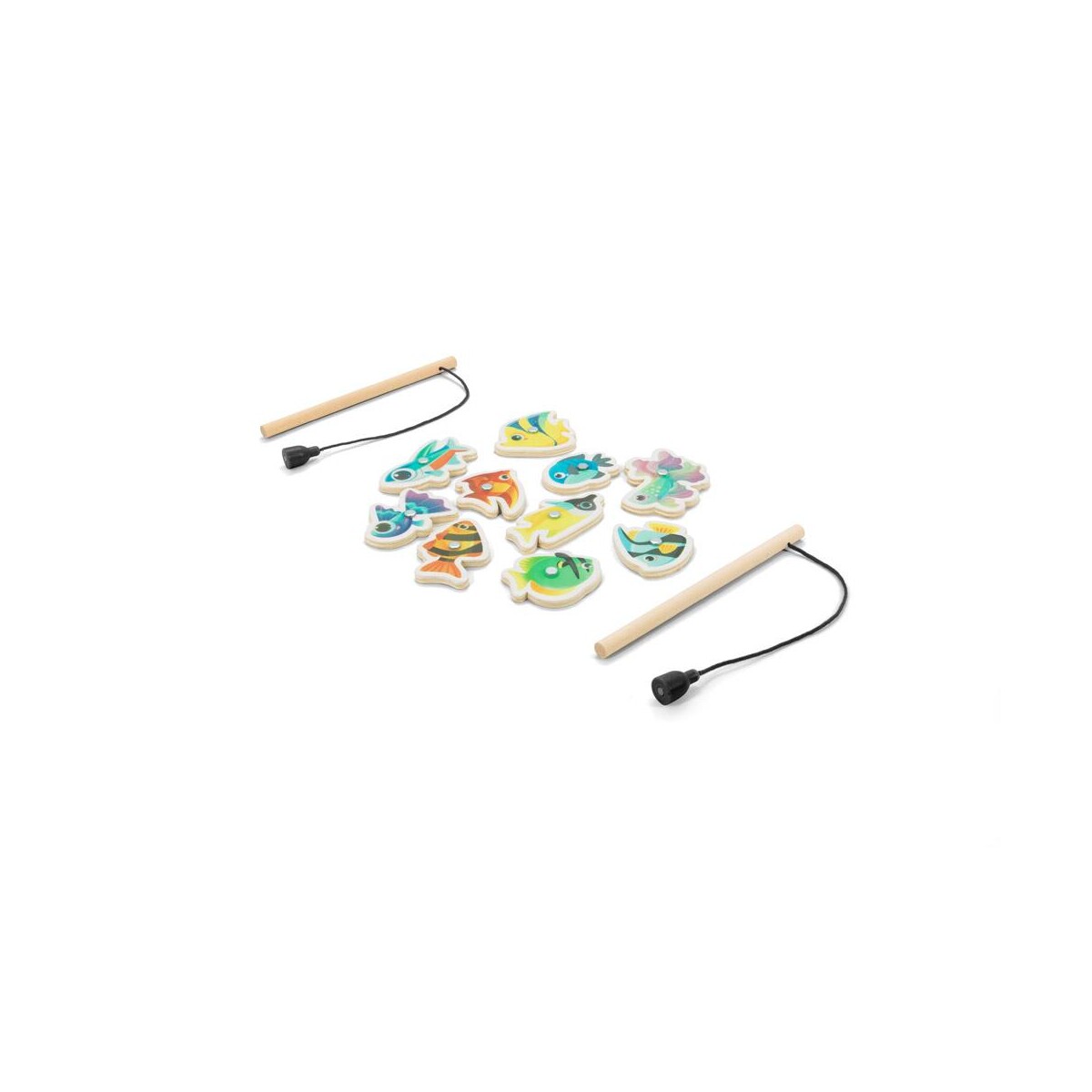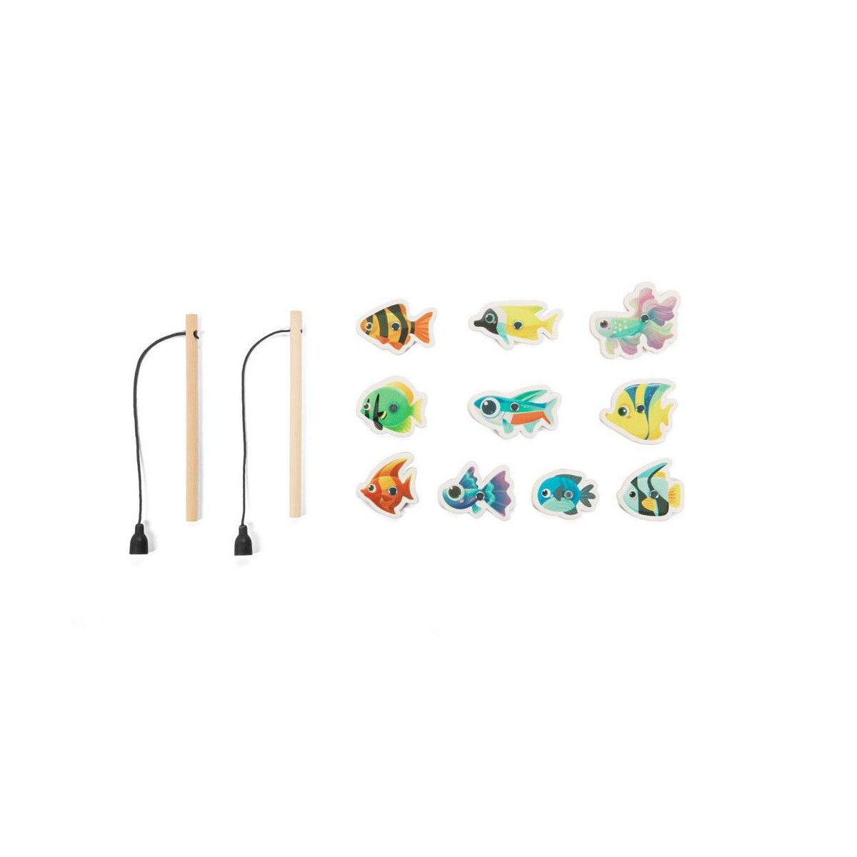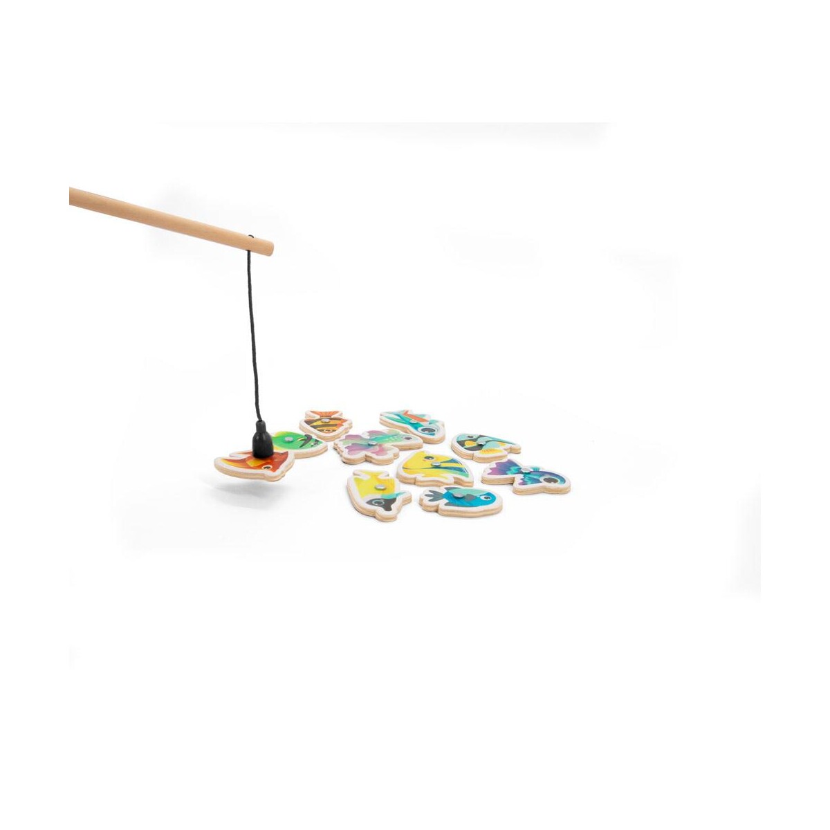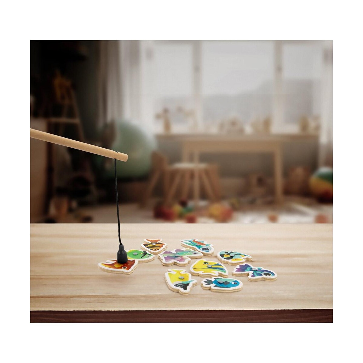 FISHY. Zestaw do łowienia ryb składający się z 10 drewnianych rybek, idealny dla dzieci