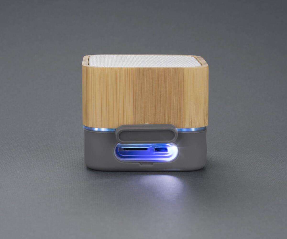 Głośnik bezprzewodowy GROOVE to wyśmienite połączenie designu inspirowanego naturą i nowoczesnej technologii. Kompaktowa bryła o wymiarach 62 × 62 × 51 mm waży zaledwie 139 g, dzięki czemu bez trudu zmieści się w torbie na siłownię, w plecaku rowerowym czy w skrzynce z narzędziami serwisanta 🚴. Elegancka obudowa z bambusu i miękkiego silikonu przyciąga wzrok ekologicznym charakterem, a wbudowane wielokolorowe światło natychmiast nadaje każdemu spotkaniu imprezowy klimat. To sprawia, że gadżet sprawdzi się nie tylko w domu, lecz także na eventach firmowych, stoiskach targowych i w plenerze.