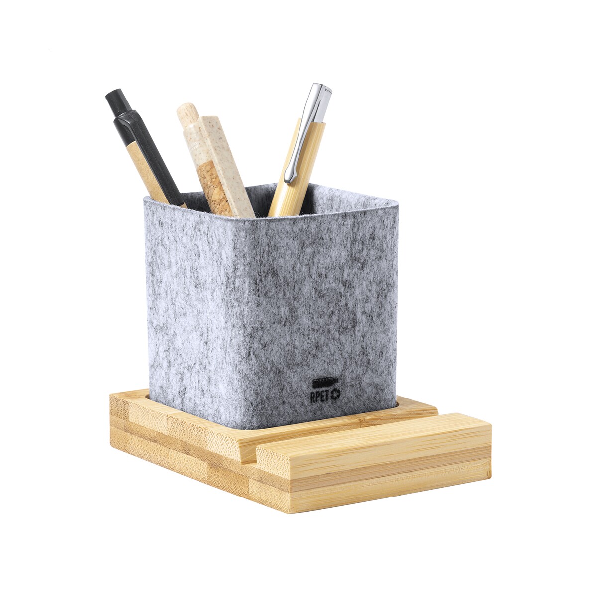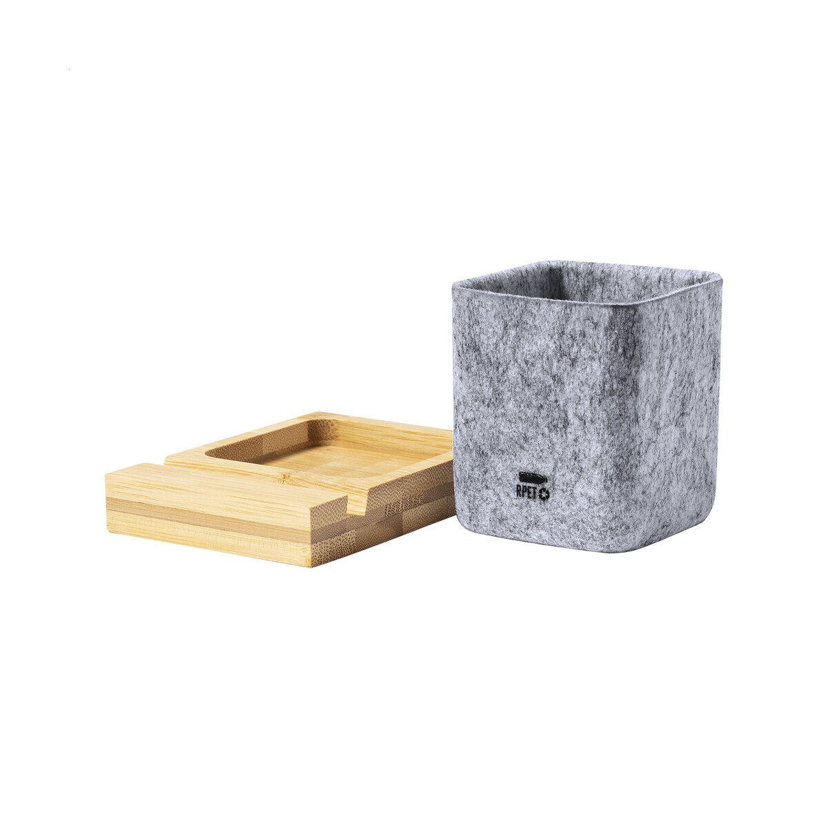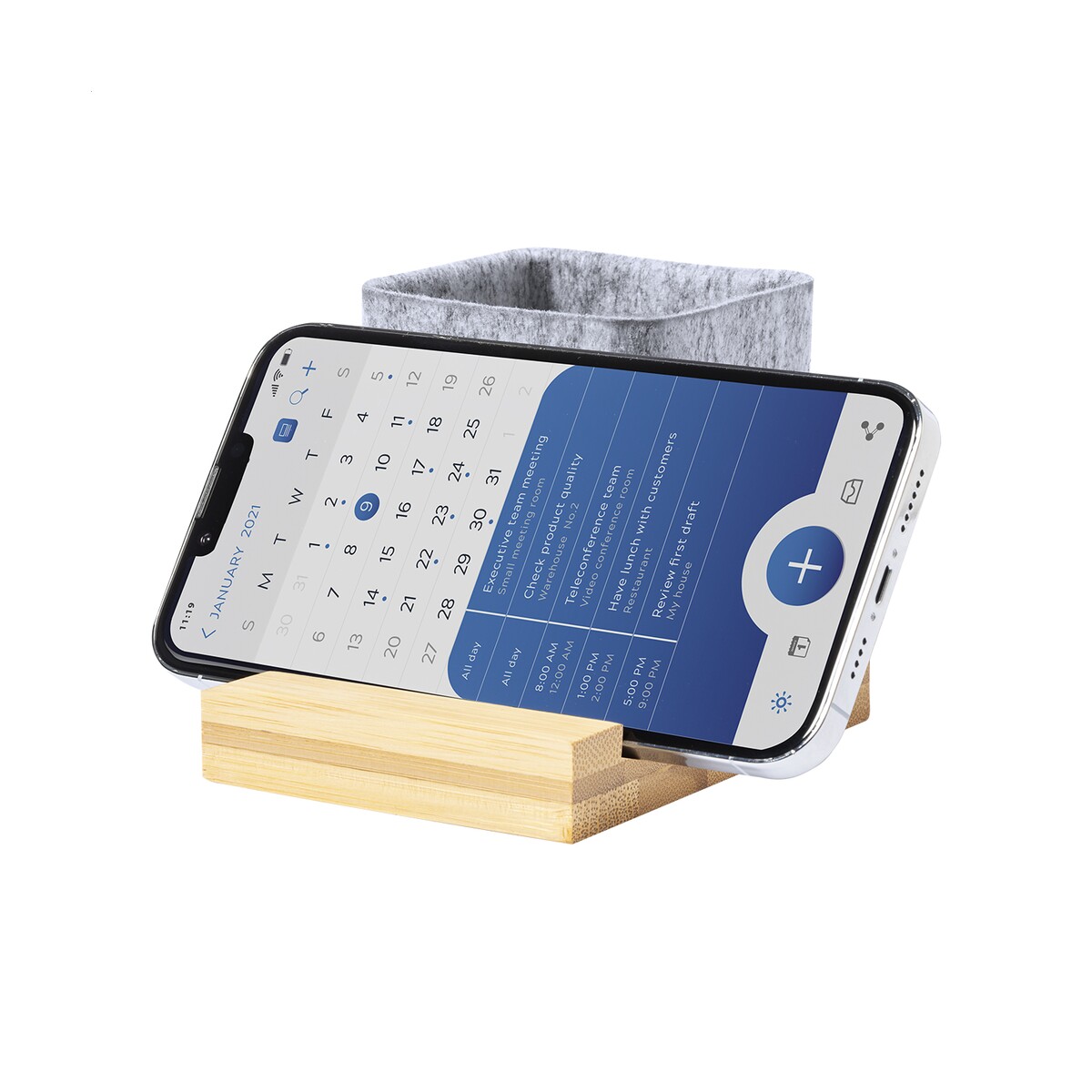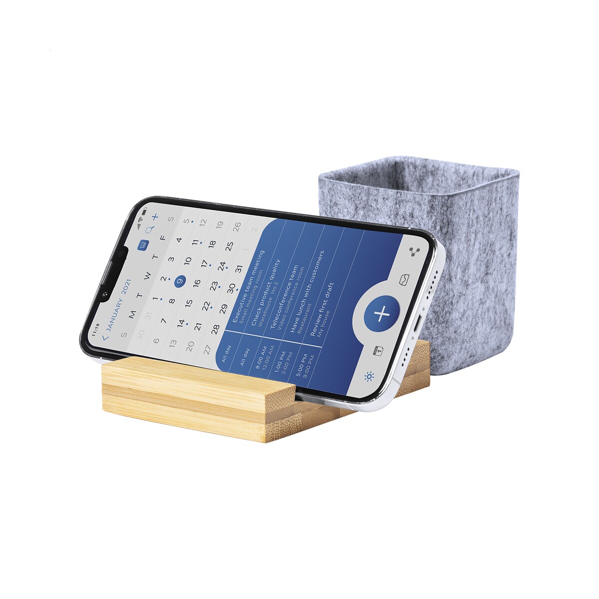 Ten praktyczny gadżet łączy funkcję stojaka na telefon z organizerem na pisaki, co przekłada się na wygodę użytkownika i estetykę miejsca pracy 📱. Wersja w kolorze naturalnym z kontrastującym, ciemnoszarym filcem prezentuje się nadzwyczaj elegancko, a bambusowa powierzchnia jest odporna na zarysowania, dzięki czemu Twój nadruk pozostanie czytelny przez długi czas. To kapitalny upominek reklamowy na targi, konferencje i spotkania biznesowe oraz praktyczne wyposażenie biura dla Twojej firmy.