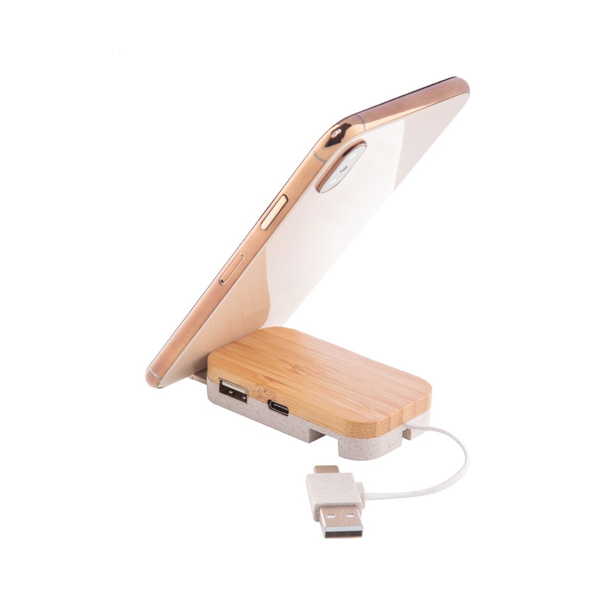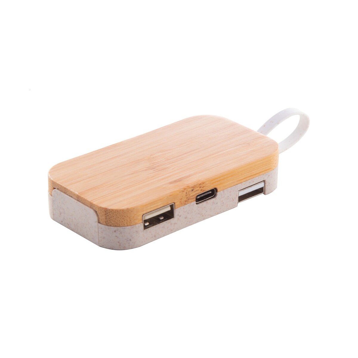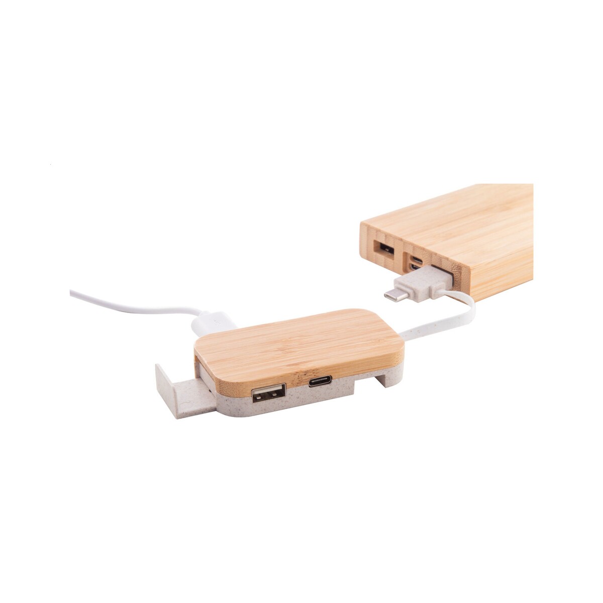 Holbaru hub USB to nowoczesny, a zarazem przyjazny środowisku gadżet, który natychmiast wyróżni się jako praktyczny upominek reklamowy 🙂. Wykonany z połączenia naturalnego bambusa oraz ekologicznej słomy pszenicznej, zachwyca nie tylko ponadczasową estetyką, lecz także niskim śladem węglowym. Dzięki kompaktowym wymiarom 100×41×15 mm i masie zaledwie 45 g z łatwością zmieści się w torbie na laptopa czy w kieszeni. W obudowie producent sprytnie ukrył 2 porty USB oraz 2 porty USB-C (standard USB 2.0), co pozwala podłączyć jednocześnie pamięć przenośną, myszkę, klawiaturę lub ładowarkę. Dodatkowa funkcja uchwytu na telefon zamienia hub w poręczną podstawkę, ułatwiającą wideokonferencje i oglądanie filmów w podróży 🔌.