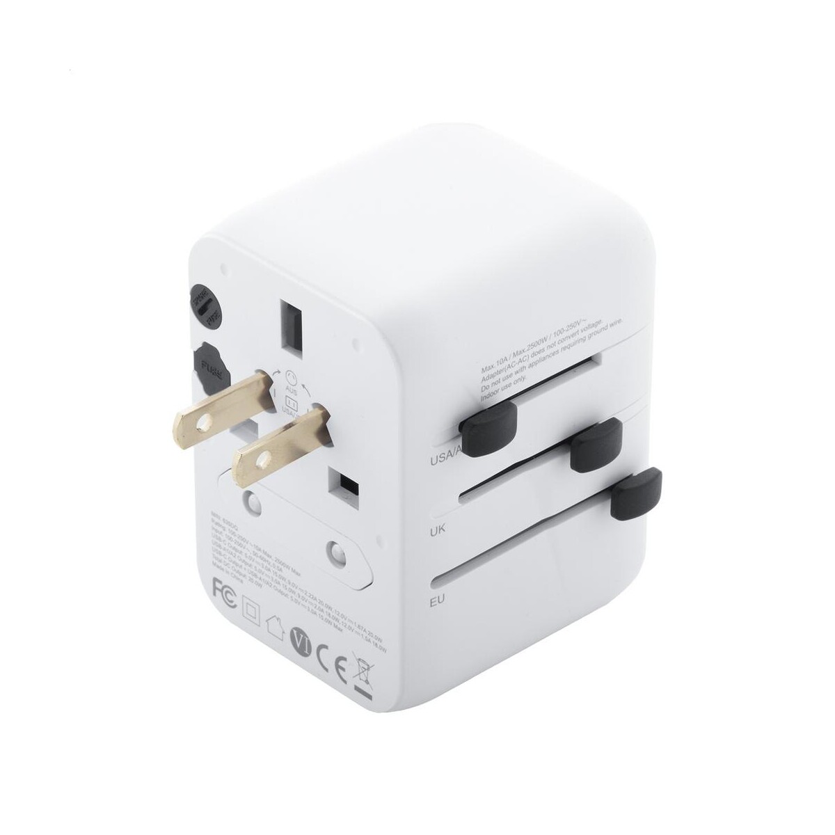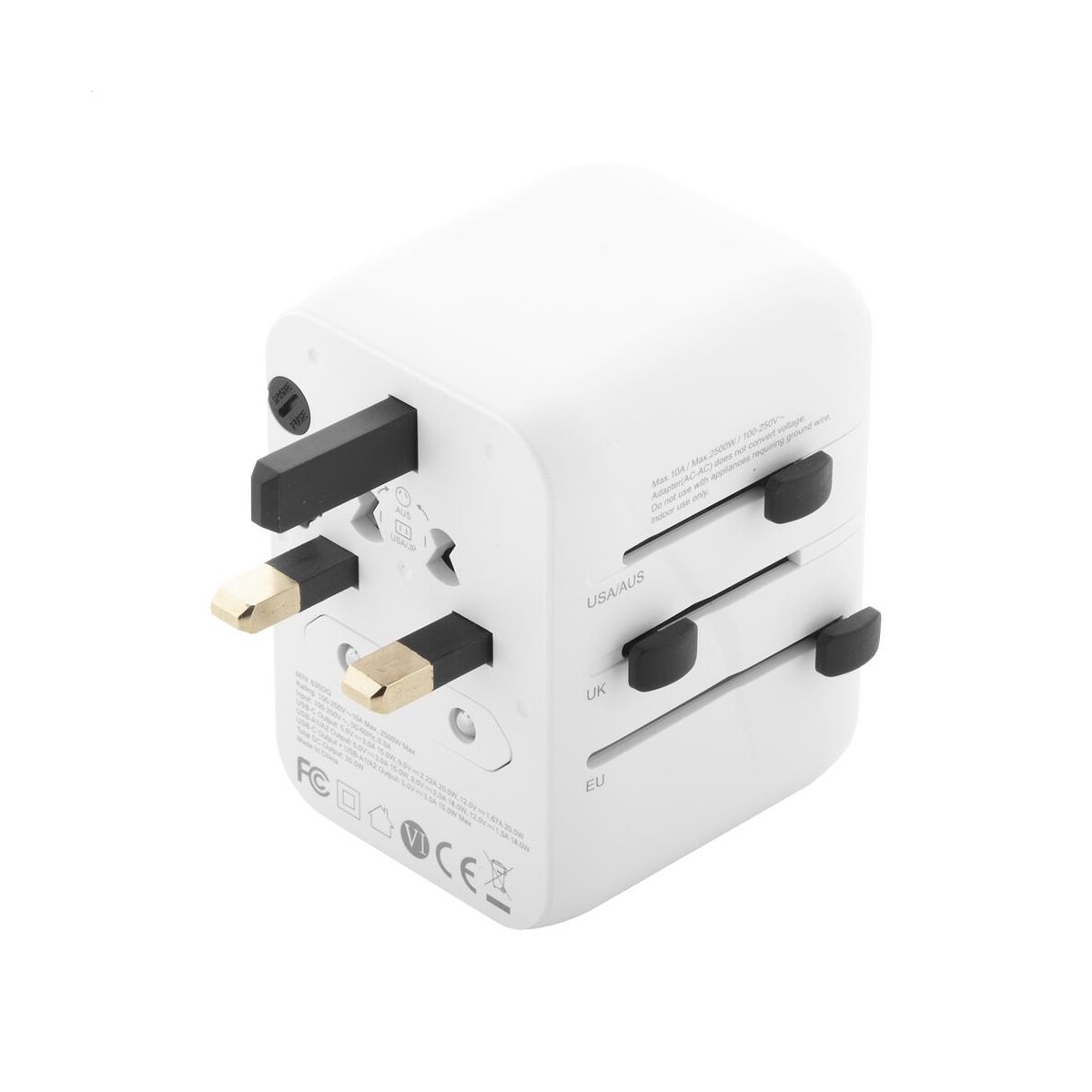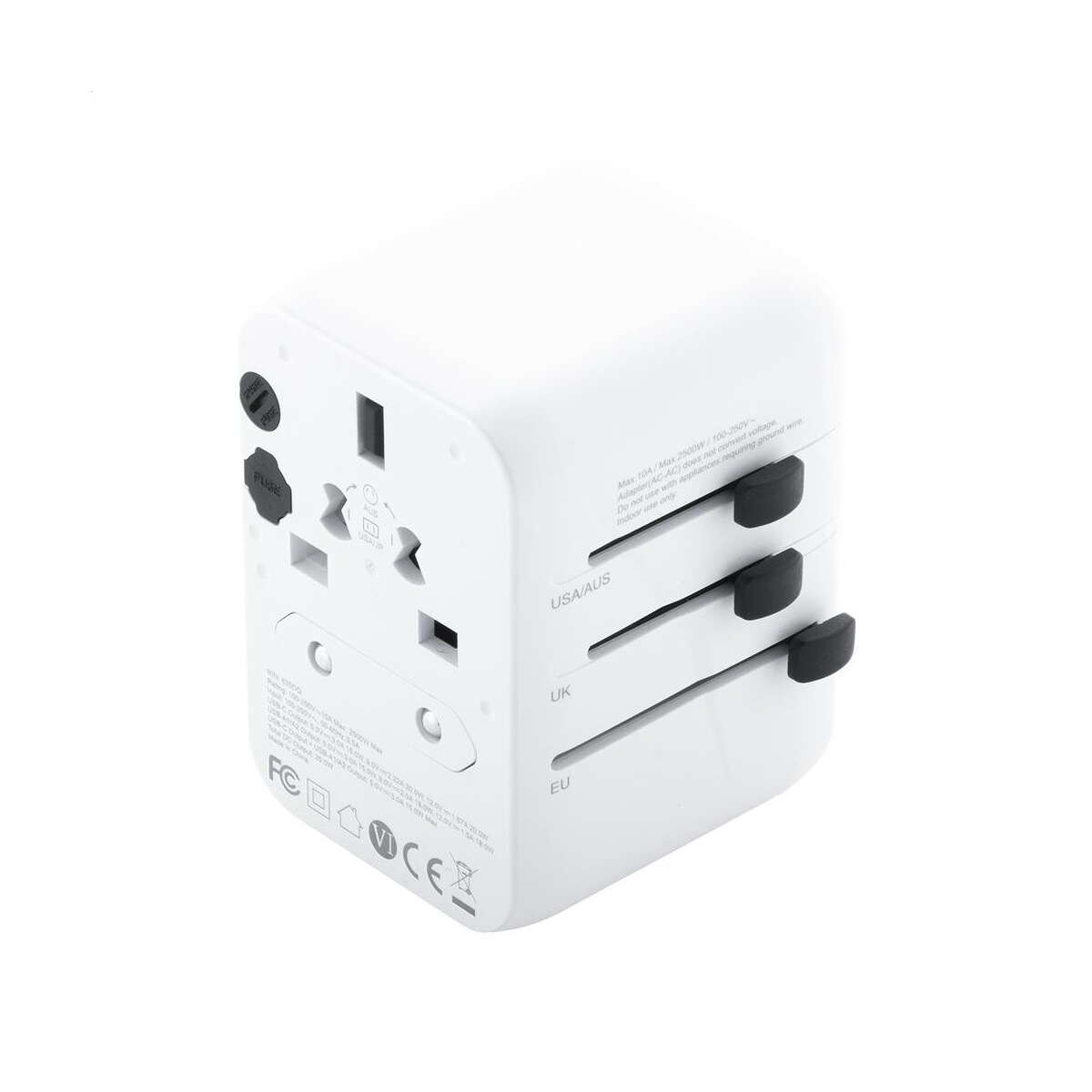 Jetsetter Plus adapter podróżny / przejściówki to znakomity towarzysz wszystkich wyjazdów służbowych i wakacyjnych, który zamieni każde gniazdko na świecie w centrum zasilania Twoich urządzeń. Dzięki wbudowanym wtyczkom do USA, Europy, Wielkiej Brytanii i Australii bez trudu podłączysz laptop, smartfon czy golarkę, a dwa porty USB oraz port szybkiego ładowania USB-C obsługują technologię PD20W, skracając czas ładowania do minimum 😊. Solidne tworzywo ABS chroni elektronikę przed uszkodzeniami, a kompaktowa konstrukcja o wymiarach 70×53×53 mm i wadze 166 g pozwala zmieścić urządzenie w każdej kabinie samolotu. Biały kolor obudowy stanowi doskonałe tło pod firmowe logo lub kreatywny nadruk, dzięki czemu Jetsetter Plus adapter podróżny / przejściówki staje się efektownym gadżetem reklamowym.