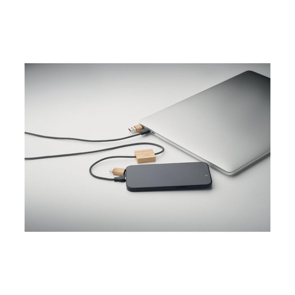 Kabel ładujący o mocy 60W CABOO to znakomity wybór dla każdej marki, która pragnie postawić na ekologiczne, a zarazem nowoczesne rozwiązania technologiczne 🙂. Łącząc siłę ładowania aż 60W z przyjaznymi środowisku materiałami – bamboo oraz tworzywem RPET – ten model zachwyca zarówno wyglądem, jak i wydajnością. Kompaktowe wymiary 100 × 2,8 × 1 cm i niska waga jedynie 42 g sprawiają, że mieści się w kieszeni plecaka, torebki czy saszetki, zawsze będąc pod ręką użytkownika.