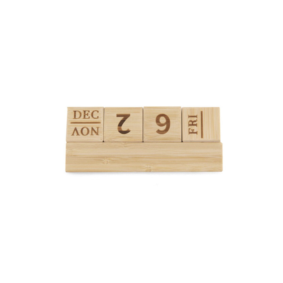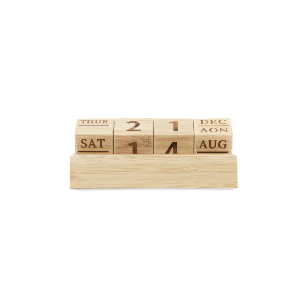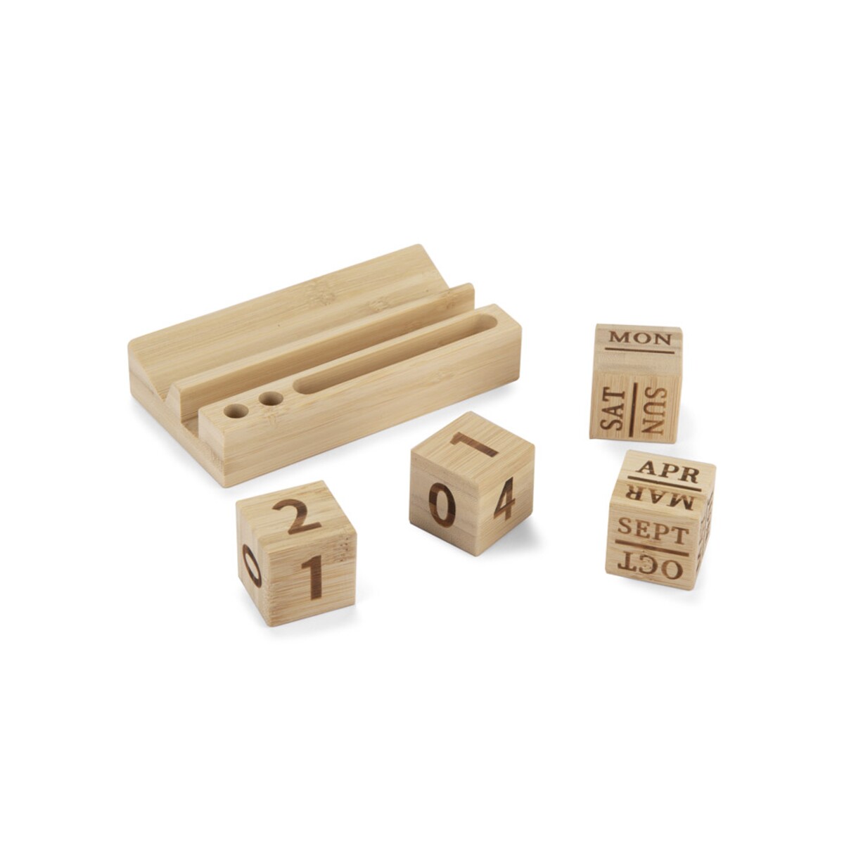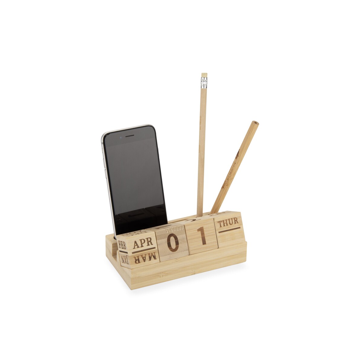 Kalendarz bambusowy NEN to niezwykle praktyczny i efektowny gadżet, który odmieni każde biurko 🌿. W całości wykonany z naturalnego bambusa, zachwyca ekologicznym charakterem i trwałością, dzięki czemu posłuży użytkownikowi przez długie lata. Wymienne bambusowe klocki z nazwą dnia tygodnia, liczbą dnia miesiąca i nazwą miesiąca czynią z niego wieczny kalendarz, który nigdy nie traci na aktualności. Dzięki przemyślanej konstrukcji pełni również rolę poręcznego stojaka: z łatwością uporządkujesz w nim długopisy, ołówki, spinacze, a nawet telefon.
