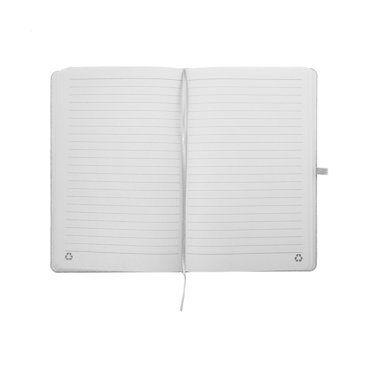 Kapaas notes to znakomity notatnik A5, który łączy elegancję z troską o środowisko. Okładka wykonana w 100 % z bawełny z recyklingu w pięciu modnych kolorach – czerwonym, szarym, niebieskim, naturalnym oraz zielonym – natychmiast przyciąga wzrok i staje się pierwszorzędnym miejscem na logo czy wyrazisty nadruk. 80 gładko przesuwających się pod piórem kartek w linie, stworzonych z papieru z recyklingu, daje aż 160 stron na notatki, szkice i kreatywne pomysły. Całość dopełnia dopasowana kolorystycznie zakładka wstążkowa, mocna gumka spinająca oraz praktyczny uchwyt na długopis – detale, które sprawiają, że ten ekologiczny gadżet staje się prawdziwie funkcjonalny 😊.