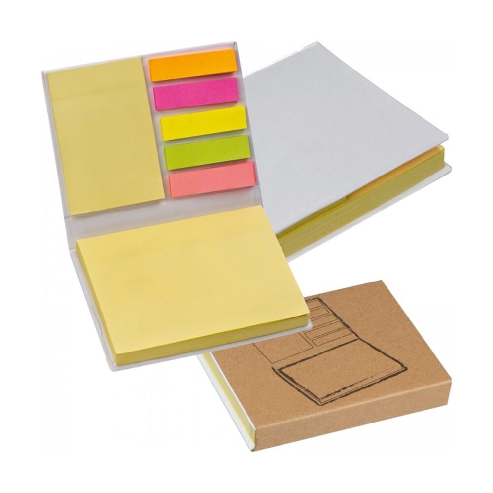 W środku znajdziesz blok 100 kartek do notatek oraz pięć kompletów kolorowych karteczek indeksujących – po 25 sztuk w każdym odcieniu. Taka kombinacja pozwala szybko segregować informacje, planować projekty i zaznaczać priorytety. Powierzchnia karteczek świetnie poddaje się personalizacji: umieść na niej logo lub dowolny nadruk, by powstał niezwykle przydatny upominek reklamowy. Zestaw w białej oprawie sprawia, że Twoje barwy firmowe będą prezentować się wyjątkowo wyraziście 🌟.