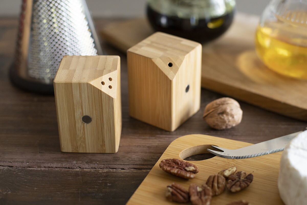 Dzięki neutralnemu, naturalnemu kolorowi bambusa zestaw harmonijnie dopełnia kuchnie domowe i firmowe kantyny, a jego kompaktowa forma sprawia, że można go zabrać na piknik, w podróż kamperem czy do biurowego lunchroomu. Znakomity kształt i wbudowane magnesy gwarantują wygodę użytkowania, a starannie zaokrąglone krawędzie podkreślają wysoką jakość wykonania. Postaw na ten doskonały reklamowy gadżet i pozwól, aby Twoje logo zagościło na każdym stole! 😍