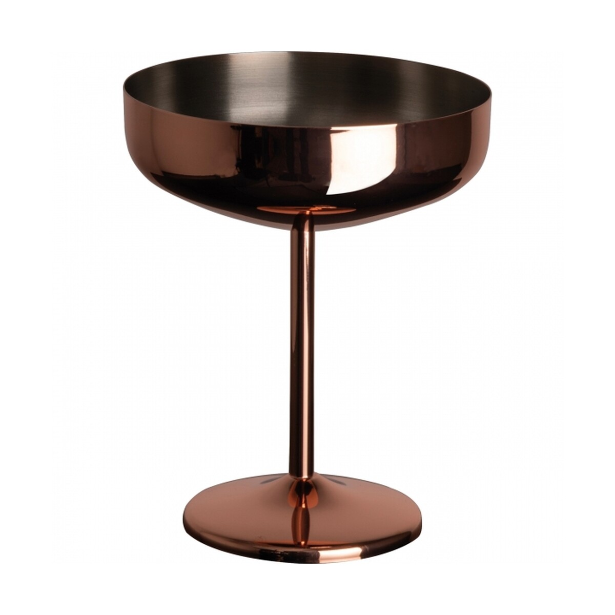 Walory użytkowe produktu podkreślają kompaktowe wymiary 14,5 × ⌀ 11,7 cm oraz niewielka waga 0,240 kg, dzięki czemu kieliszek świetnie leży w dłoni i ułatwia serwis przy barze. Miedziana powłoka nie tylko przyciąga wzrok, ale i znakomicie utrzymuje niższą temperaturę napoju, co jest szczególnie doceniane podczas letnich przyjęć w plenerze. To znakomity wybór dla hoteli, restauracji, barów koktajlowych i firm cateringowych, które cenią niepowtarzalny styl i najwyższą jakość wyposażenia.