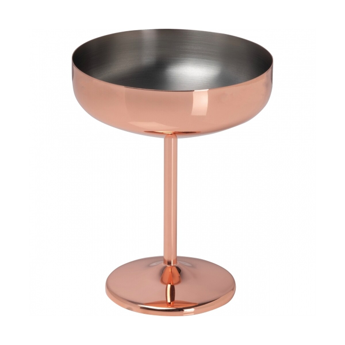 Kieliszek stalowy do Martini 300 ml CrisMa EUGENIA to prawdziwie designerski akcent, który doda prestiżu każdej celebracji. Wykonany w całości z stal nierdzewna, z zewnątrz wykończony elegancką, lustrzaną miedzią, zachwyca zarówno wyglądem, jak i trwałością. Pojemność 300 ml pozwala serwować klasyczne Martini w dużym, efektownym wydaniu, a szeroka czasza o średnicy 11,7 cm pięknie eksponuje aromat trunku. 😉