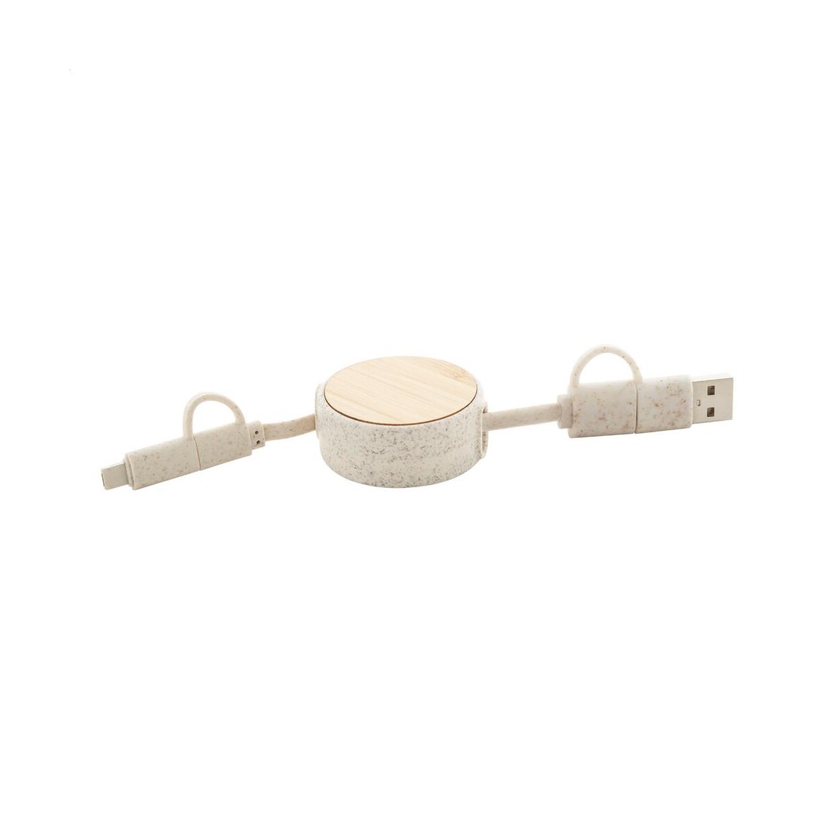 Komugo kabel USB do ładowania to nowoczesny, zwijany przewód 3 w 1, który już od pierwszego spojrzenia zachwyca ekologicznym charakterem. Wykonany z połączenia naturalnej słomy pszenicznej, bambusa oraz tworzywa sztucznego, stanowi znakomity wybór dla marek stawiających na zrównoważony rozwój. Jego kompaktowe wymiary 1000 × 45 × 19 mm i lekka waga 37,5 g sprawiają, że bez trudu zmieści się w kieszeni, plecaku czy torebce, a mechanizm automatycznego zwijania chroni przewody przed splątaniem 😊.
