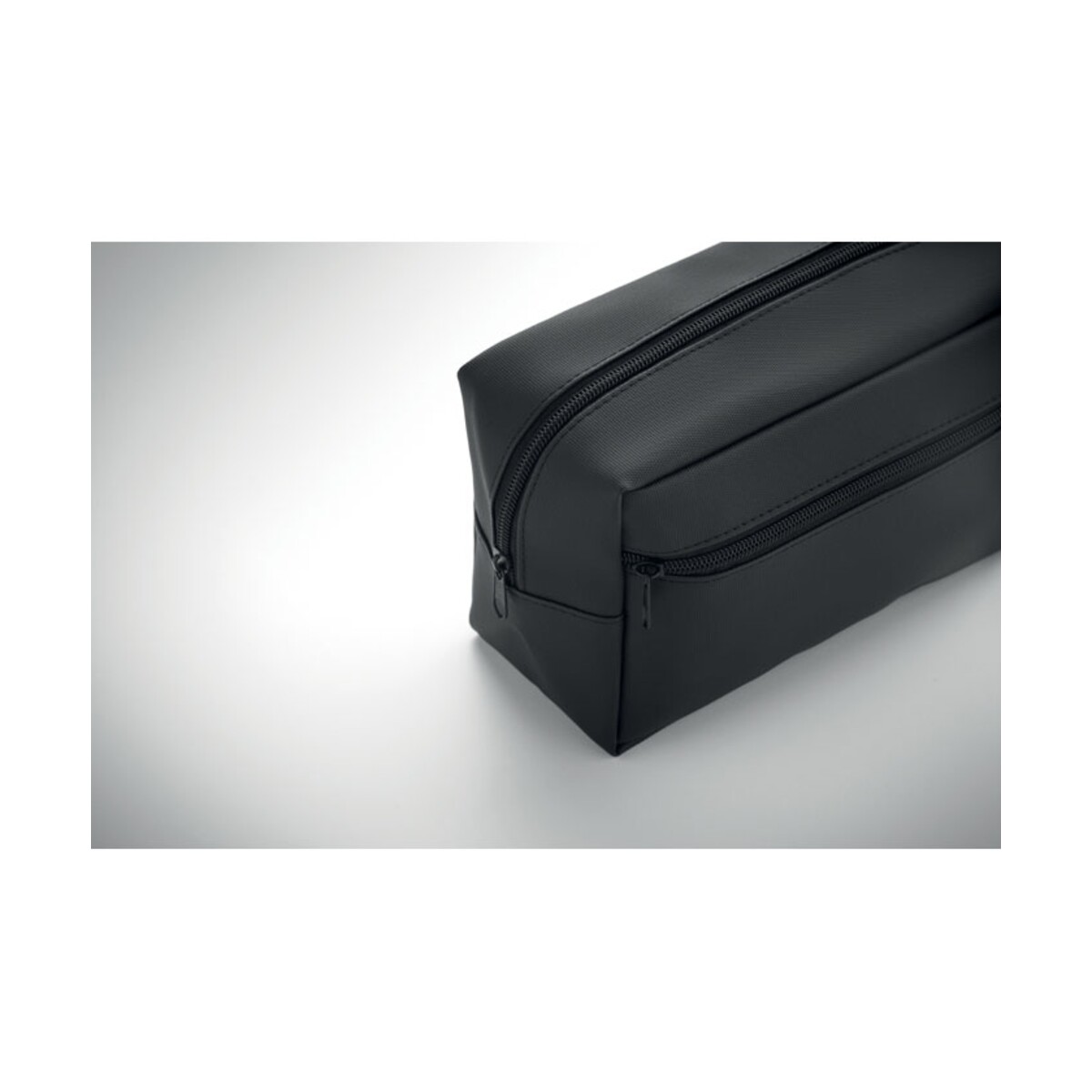 Kosmetyczka z 600D RPET DOPPKIT to niezwykle praktyczny i stylowy gadżet, który wzniesie wizerunek każdej marki na nowy poziom 🙂. Wykonana z wytrzymałego poliestru 600D RPET z powłoką PU oraz podszewką 210D RPET, łączy dbałość o środowisko z miejską elegancją. Jej kompaktowe wymiary 21 × 13 × 9 cm i lekka waga 0,130 kg sprawiają, że zmieści się w każdej torbie podróżnej, a dzięki solidnemu uchwytowi z łatwością przeniesiesz ją z hotelu na siłownię.