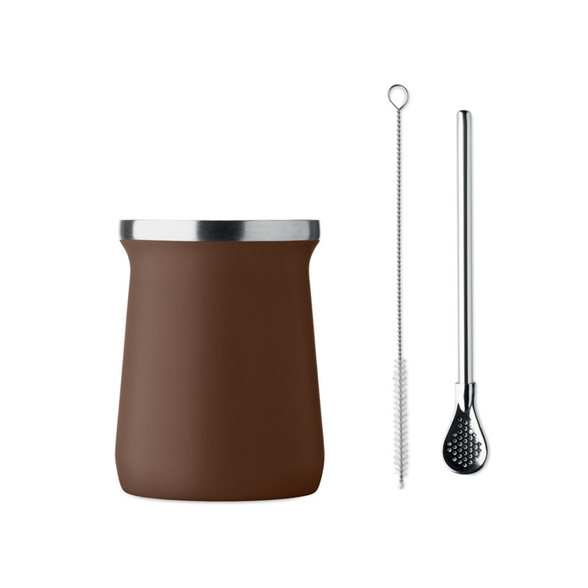 Kubek do herbaty yerba mate MIYERBA to znakomity wybór dla wszystkich, którzy pragną połączyć ekologiczne podejście z eleganckim designem. Wykonany z aż 90% stali nierdzewnej z recyklingu, z podwójną ścianką izolującą napój, dba o utrzymanie odpowiedniej temperatury Twojej ulubionej yerby, kawy czy herbaty przez dłuższy czas. Do zestawu dołączono słomkę bombilla ze stali nierdzewnej oraz szczoteczkę do czyszczenia, co zapewnia wygodę użytkowania oraz łatwe utrzymanie czystości. Pojemność 240 ml, wymiary ø8 × 10,7 cm i niewielka waga 0,200 kg czynią go poręcznym towarzyszem zarówno w biurze, jak i w terenie 🙂