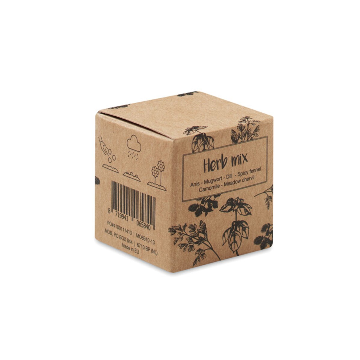Kula z nasionami ziół BOMBI III to niewielka, ale pełna życia sfera, która po zetknięciu z ziemią zamienia się w aromatyczny ogródek z anyżem, artemisia vulgaris, koprem, koprem włoskim, rumiankiem i pietruszką. Dzięki wymiarowi ø2,5 cm i wadze zaledwie 0,016 kg bez problemu zapakujesz ją do paczki lub wręczysz klientowi podczas eventu. Naturalny paper w ciepłym, beżowym odcieniu podkreśla ekologiczny charakter produktu, a jednocześnie świetnie eksponuje logo lub kreatywny nadruk 😊.