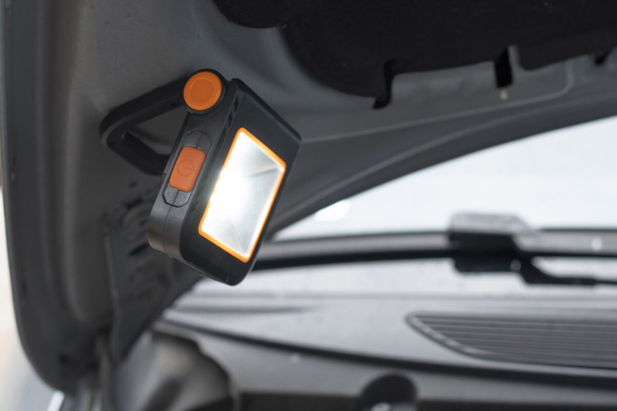 Latarka COB TORGET to niezwykle praktyczny gadżet, który łączy kompaktowe rozmiary z imponującą mocą świecenia. Wyposażona w dziesięć diod LED oraz sześć czerwonych, zapewnia jasne białe światło w trybie ciągłym i sygnał ostrzegawczy w trybie przerywanym czerwonym. Dzięki temu Latarka COB TORGET sprawdzi się zarówno podczas wieczornych spacerów, jak i przy pracach serwisowych czy awaryjnych naprawach samochodu. Regulowana podstawka – pełniąca także funkcję uchwytu – umożliwia ustawienie źródła światła pod dowolnym kątem, a trzy wbudowane magnesy pozwalają stabilnie zamocować latarkę do metalowych powierzchni ⚙️.