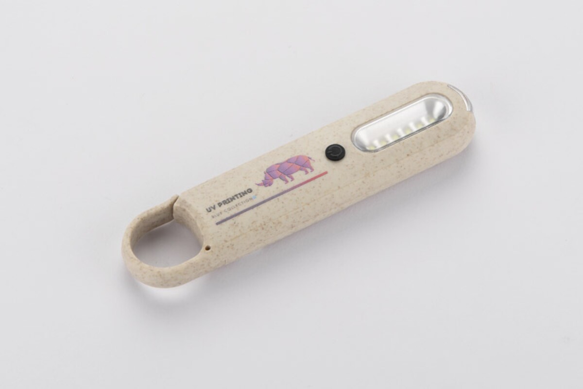 Dzięki zasilaniu trzema popularnymi bateriami AAA, wymienianymi w kilka sekund, urządzenie nie zawiedzie nawet w odległym terenie. Wytrzymałe tworzywo odporne na codzienne zarysowania oraz naturalny kolor obudowy atrakcyjnie kontrastują z barwnym nadrukiem, gwarantując, że Twoje logo będzie zawsze widoczne. To wyśmienity wybór podczas targów branżowych i akcji promujących zdrowie i BHP, a także kampanii CSR ukierunkowanych na ekologiczne innowacje – przecież materiał ze słomy pszennej mówi sam za siebie.