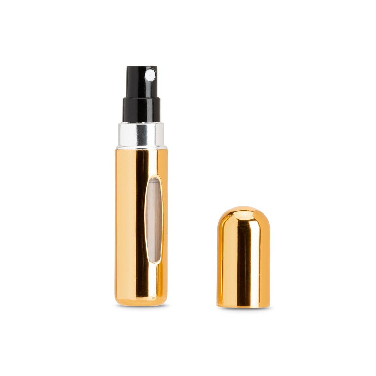 LINDEN. Aluminiowy atomizer do perfum z możliwością łatwego napełniania to prawdziwie doskonały towarzysz w podróży i na co dzień. Wykonany z wytrzymałego aluminium, waży zaledwie 12 g, a jego kompaktowe wymiary ø15 x 77 mm sprawiają, że zmieści się w kieszeni marynarki, kosmetyczce czy torebce. Sprytny system dolewania – poprzez zawór u podstawy – pozwala w kilka sekund przelać ulubione perfumy bez rozlewania i użycia lejka. Dzięki przezroczystemu okienku zawsze widzisz poziom 5 ml zapachu, więc nigdy nie zaskoczy Cię pusty flakon. Atomizer dostępny jest w czterech eleganckich kolorach: srebrnym, ciemnoniebieskim, złotym i miedzianym, co ułatwia dopasowanie do barw firmowych 🙂