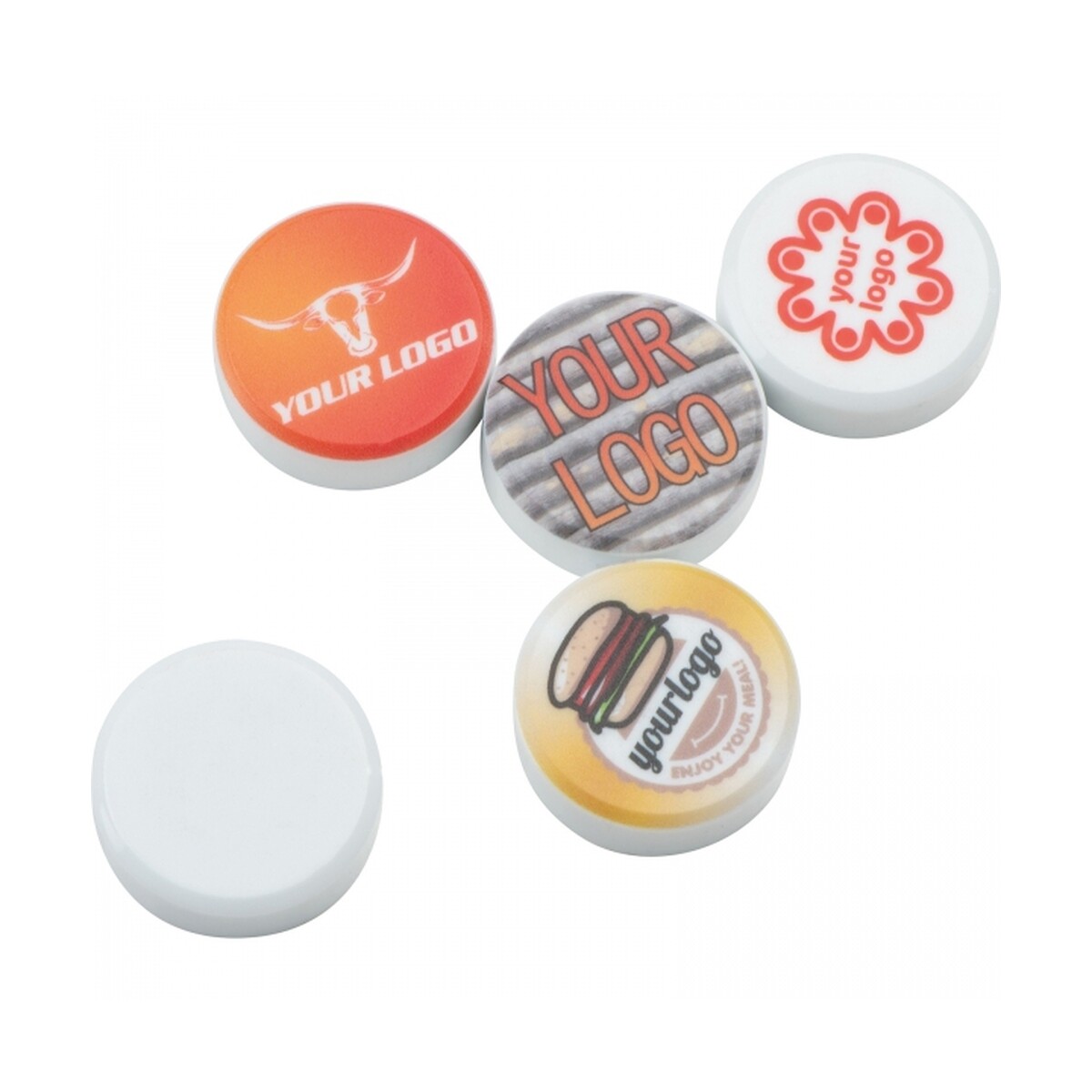 Magnes ANNA to niewielki, lecz niezwykle efektowny gadżet, który w mgnieniu oka wzbogaci każde firmowe biurko, recepcję czy stoisko targowe 🙂. Dzięki średnicy 3 cm i grubości 1 cm na kompaktowej powierzchni z tworzywa sztucznego mieści się imponująca przestrzeń na pełnokolorowy nadruk cyfrowy. Przemyślany, biały kolor stanowi idealne tło, by Twoje firmowe logo olśniewało intensywnością barw, a wyrazisty przekaz marketingowy przyciągał wzrok klientów i współpracowników.