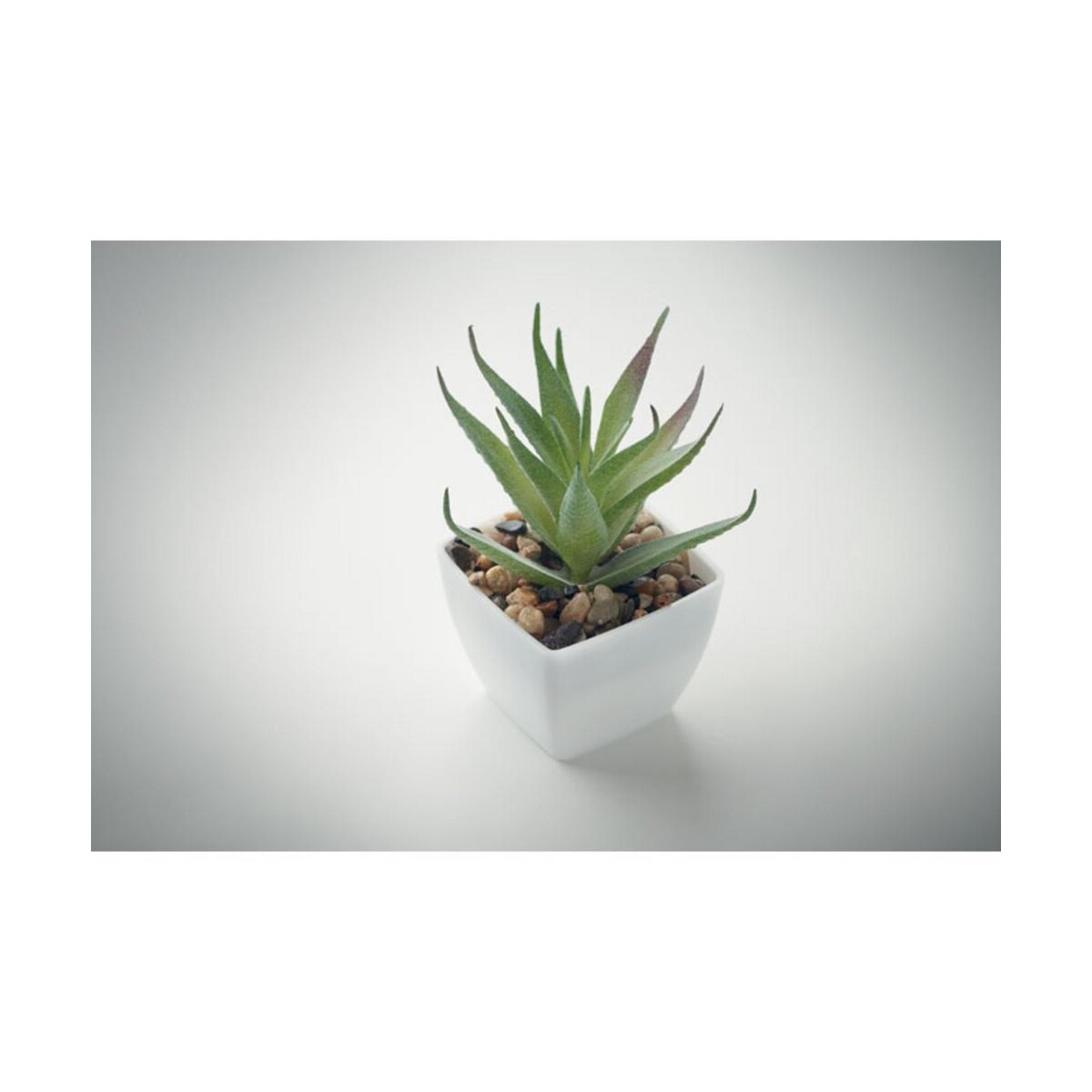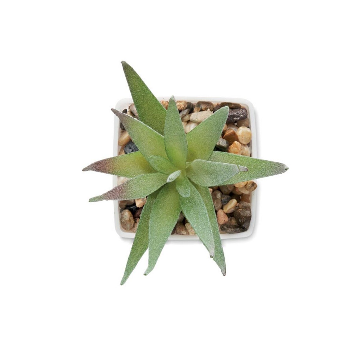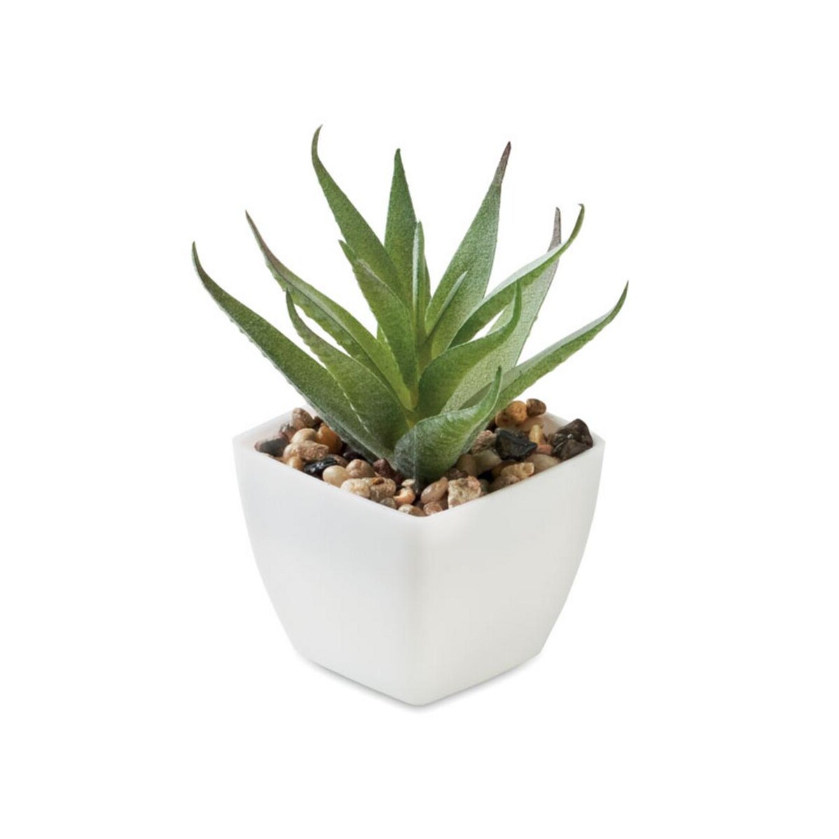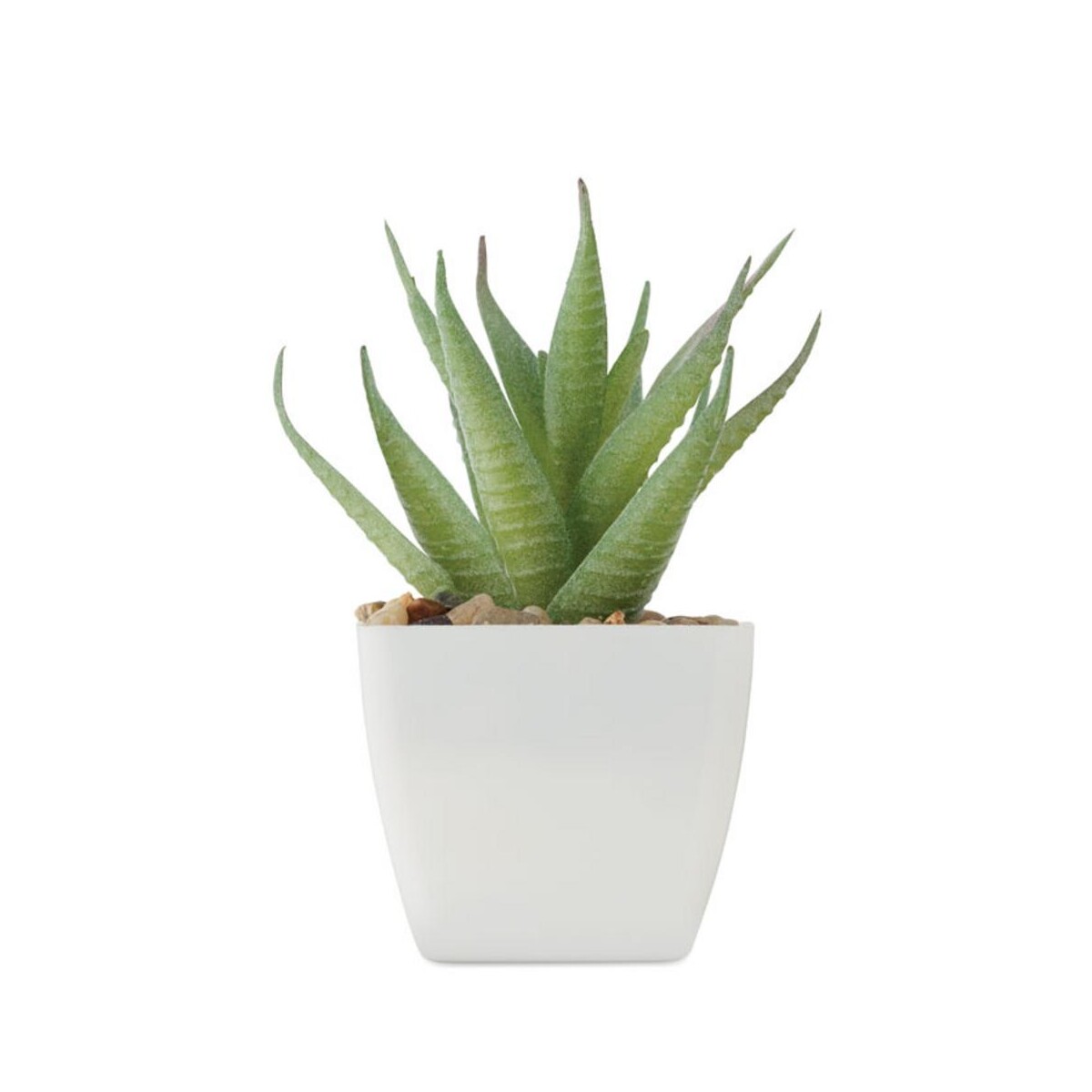 Mini sztuczna roślina ARTILOE to niewielka, lecz niezwykle efektowna dekoracja, która wprowadza odrobinę natury w każde biuro czy strefę relaksu 🙂 Jej kształt inspirowany jest aloe ferox mill, dzięki czemu imponuje realistycznym wyglądem, a jednocześnie nie wymaga podlewania ani specjalnej pielęgnacji. Ten elegancki gadżet sprawdzi się zarówno na biurku, ladzie recepcyjnej, jak i w kąciku chill-out. Umieszczone na doniczce logo oraz trwały nadruk sprawią, że każdy kontakt z rośliną będzie subtelnym przypomnieniem o marce. To propozycja znakomita dla Twojej firmy, poszukującej niebanalnego upominku.