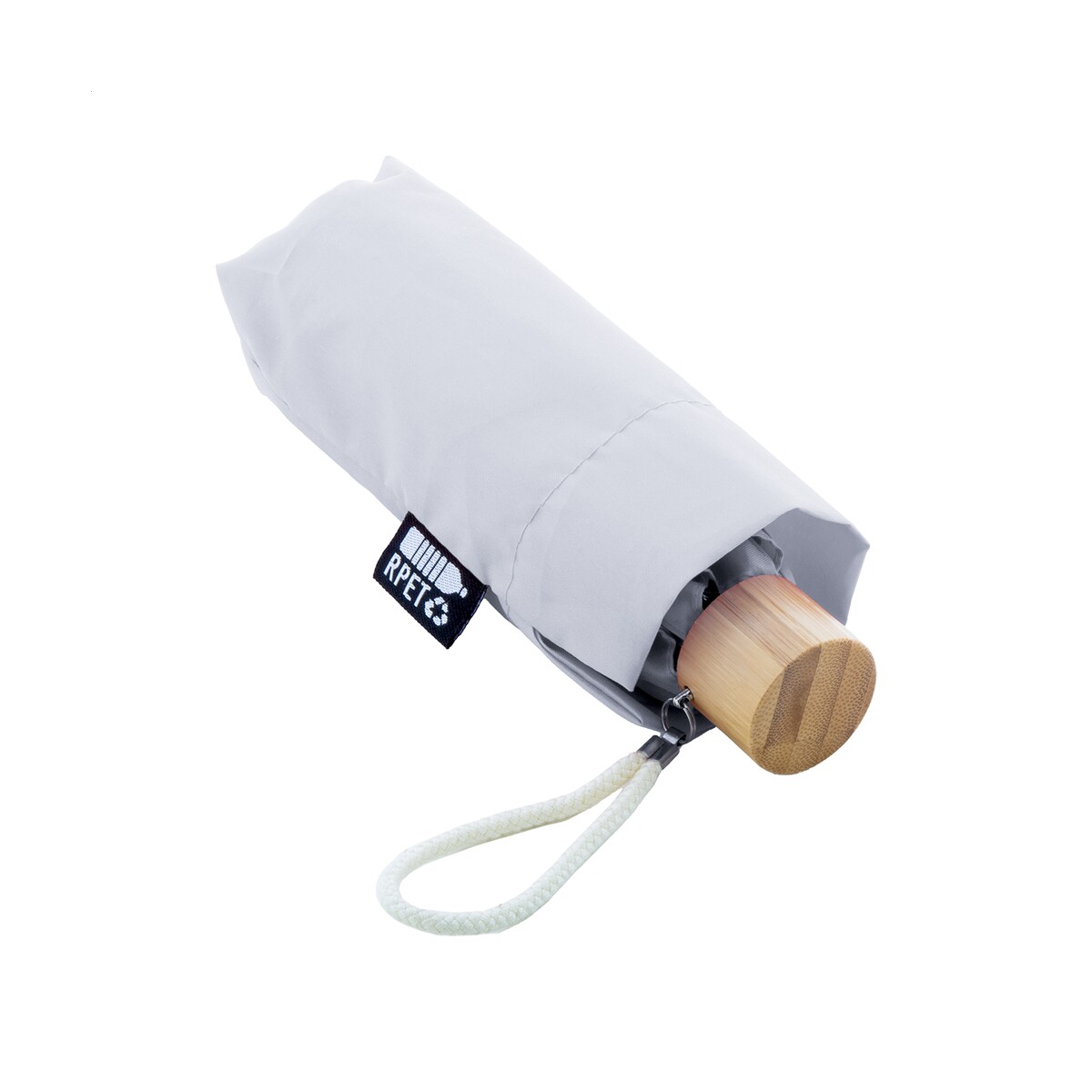 Miniboo mini parasol RPET to wyjątkowo poręczny i jednocześnie efektowny gadżet, który przyciągnie uwagę klientów w każdej branży, w szczególności w sektorze eko-technologicznym, hotelarskim, turystycznym czy motoryzacyjnym. Dzięki kompaktowym wymiarom ø890×175 mm i wadze zaledwie 206 g zmieści się w torebce, plecaku czy schowku samochodowym, a w razie potrzeby rozwinie solidną kopułę chroniącą przed ulewą i porywistym wiatrem ☔. Wiatroszczelny stelaż z metalu i włókna szklanego gwarantuje trwałość, a bambusowa rączka z bawełnianym paskiem na nadgarstek dodaje elegancji oraz naturalnego charakteru.