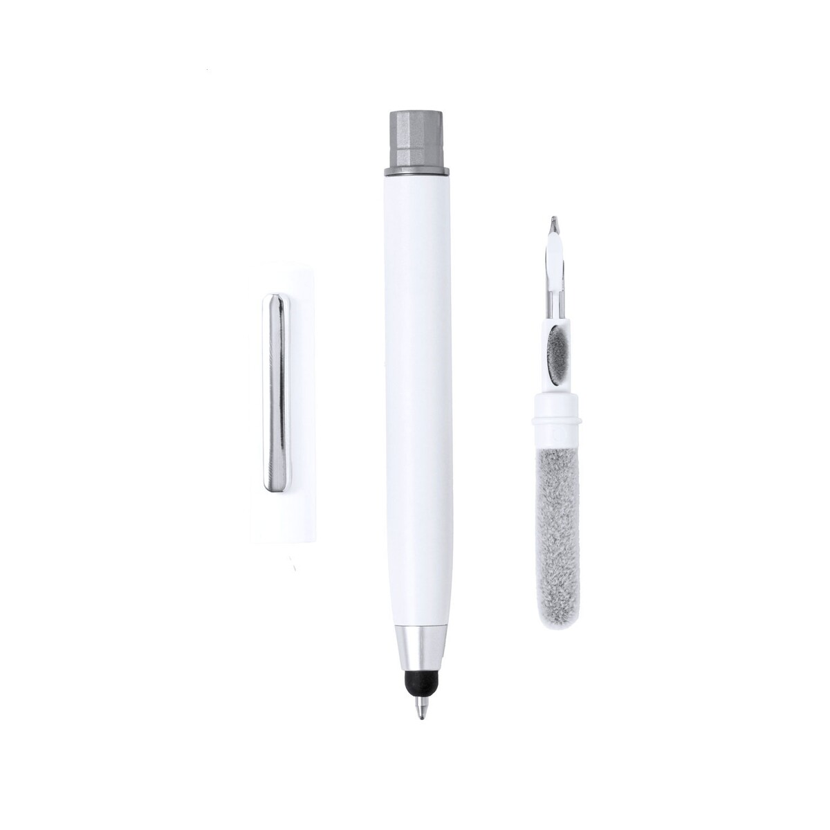 Mitim długopis do czyszczenia słuchawek to sprytne połączenie trzech funkcji w jednym, niewielkim korpusie: klasycznego długopisu z niebieskim wkładem, precyzyjnej końcówki do ekranów dotykowych oraz ukrytego zestawu do pielęgnacji słuchawek. Dzięki średnicy ø12 mm, długości 140 mm i masie zaledwie 11 g jest ultra-lekki i wygodny w noszeniu, a trwały plastik ABS zapewnia długotrwałe użytkowanie. Występuje w dwóch eleganckich kolorach – czarnym lub białym – które pięknie wyeksponują logo Twojej marki 😊.