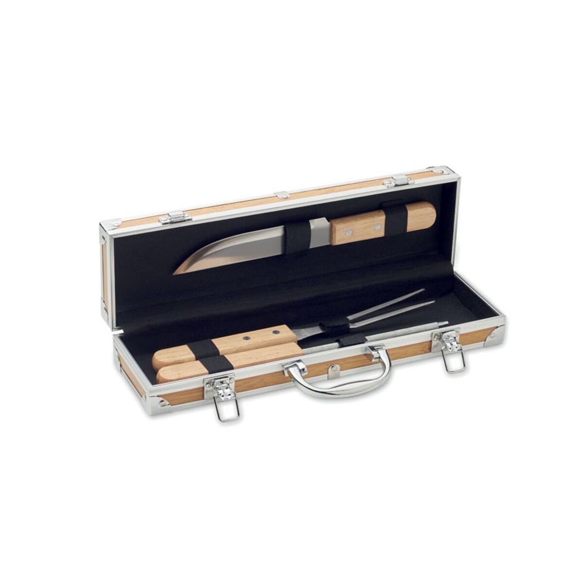 Narzędzia do grilla ze stali ni TOOLDERA to znakomity wybór dla wszystkich, którzy chcą podnieść prestiż letnich spotkań przy ruszcie. Ten elegancki gadżet zachwyca połączeniem wytrzymałej stainless steel z estetycznymi, drewnianymi uchwytami, a całość zamknięta jest w stylowej aluminiowej walizce o drewnianym wyglądzie. W zestawie znajdziesz nóż, widelec oraz ostrzałkę, które dzięki wymiarom 35,5 × 9,5 × 5,5 cm i wadze jedynie 0,813 kg są łatwe do transportu – nawet na spontaniczne pikniki 😉.